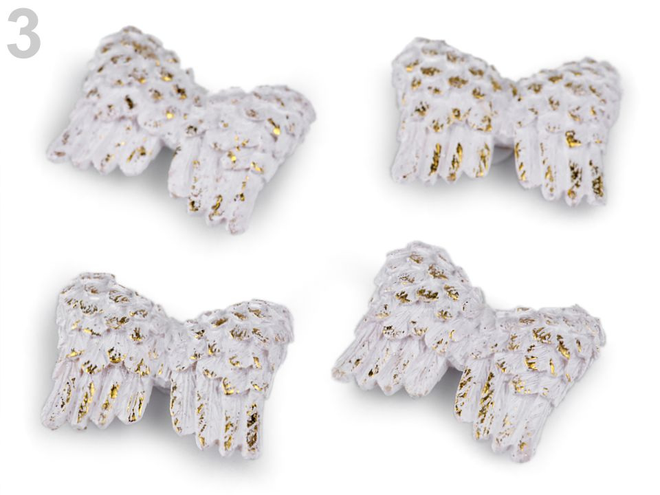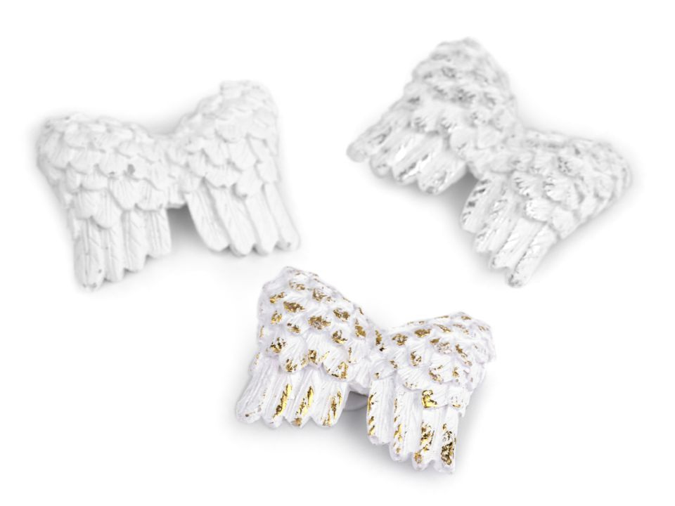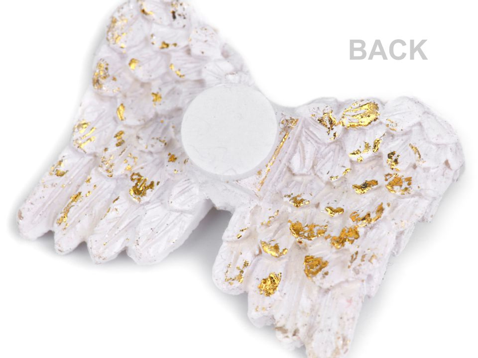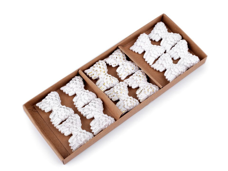 Malá andělská křídla mají na spodní straně samolepicí pěnovou tečku. Můžete je nalepit na dárky, krabičky, věnce apod.