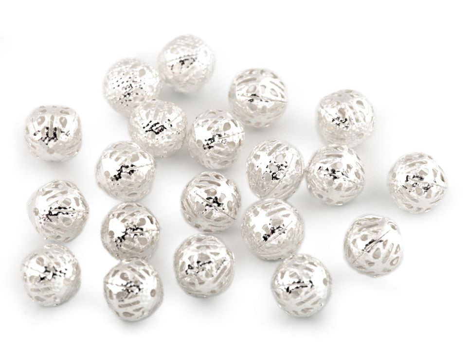 Dekorační filigránové korálky jsou duté a díky tomu velice lehké. Můžete je využít jako zajímavý a oživující prvek v dekoracích.