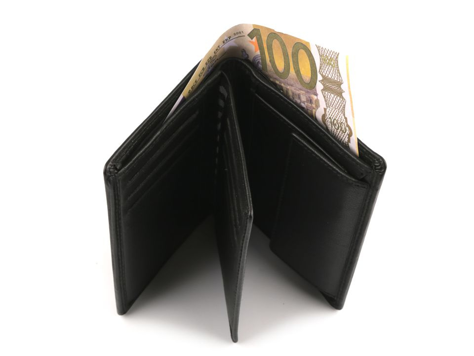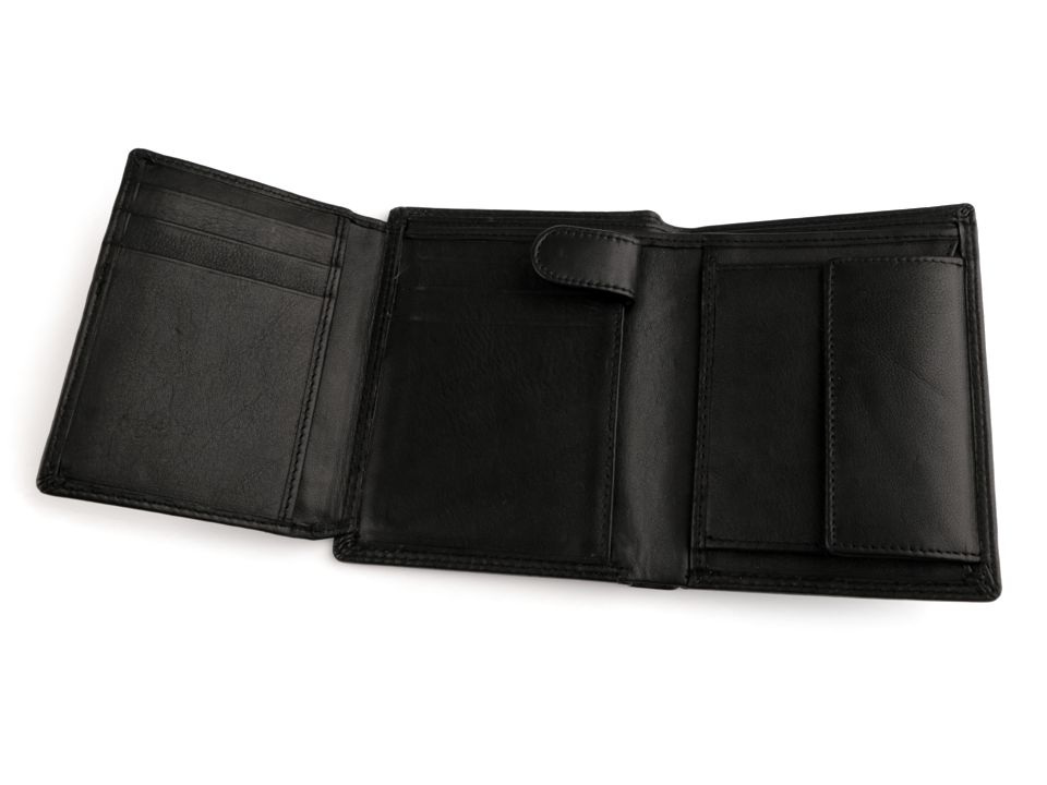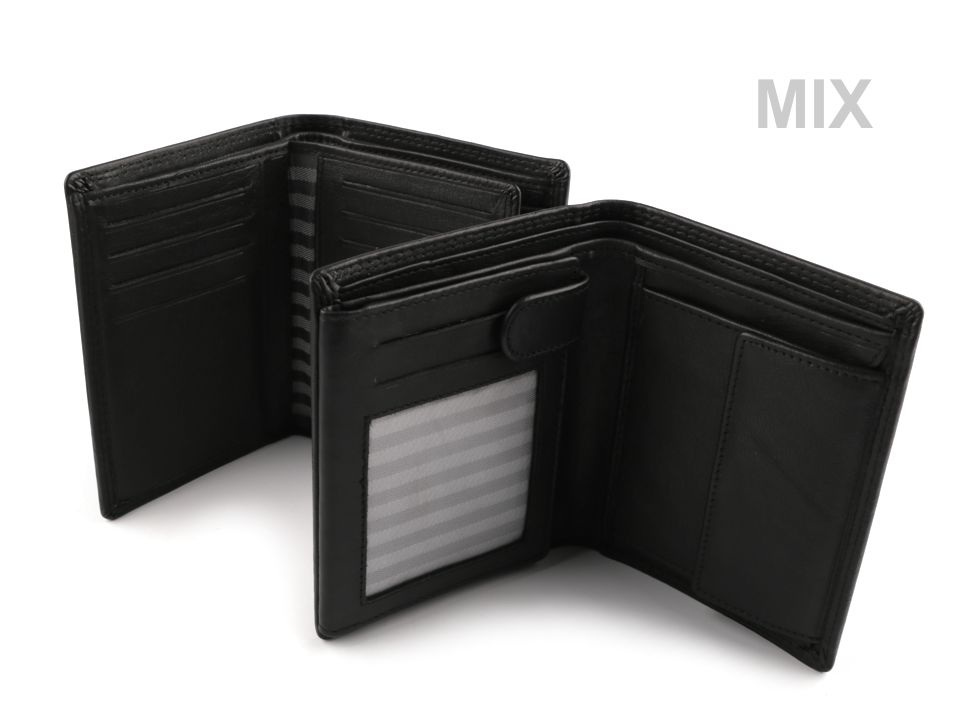 Peněženka č.1 má 2 velké přihrádky na rozložené bankovky a až 14 přihrádek na karty. 1 přihrádka má průhledné okénko. Mincovník má tvar rozkládací kapsy, zapíná se na klopu na patentku.