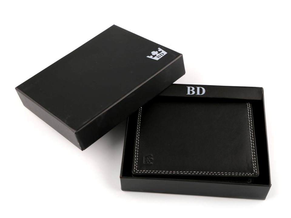 Luxusní pánská peněženka z pravé kůže má velice kvalitní provedení. Je pěkně a přehledně uspořádaná. Lehká a příjemná na dotek. Na okraji má konstrastní štepování bílou nití. Dodáváme ji v krabičce.
