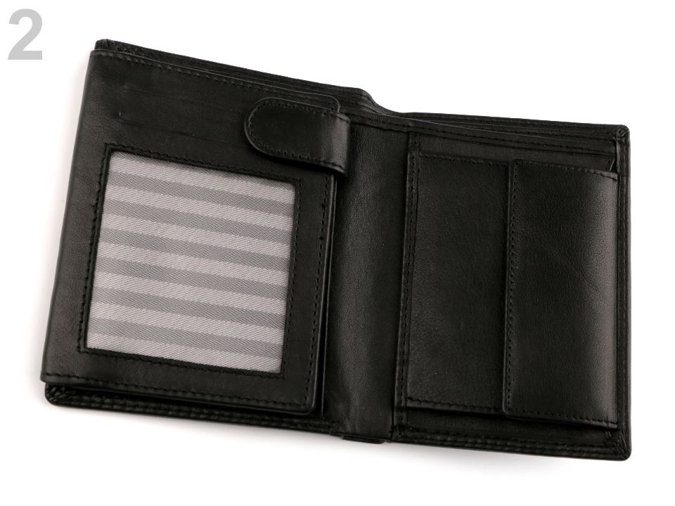 Peněženka č.2 má 2 velké přihrádky na rozložené bankovky a 10 přihrádek na karty. 1 přihrádka má průhledné okénko. Oddíl na karty, jež je uvnitř peněženky, se zapíná na zápinku na patentku. Mincovník má tvar rozkládací kapsy, zapíná se na klopu na patentku.