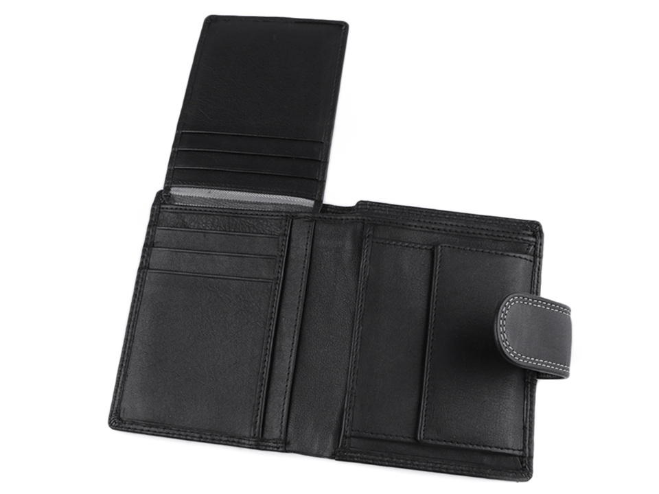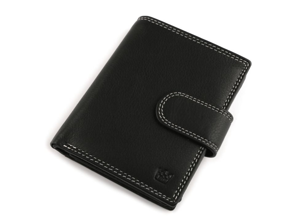 Luxusní pánská peněženka z pravé kůže má velice kvalitní provedení. Je pěkně a přehledně uspořádaná, lehká a příjemná na dotek. Na okraji má konstrastní štepování bílou nití. Dodáváme ji v krabičce.