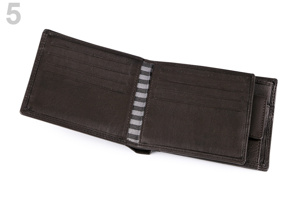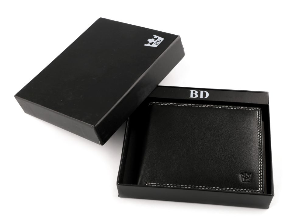 Luxusní pánská peněženka z pravé kůže je velice kvalitní, s chytrým designem. Je pěkně a přehledně uspořádaná, lehká a příjemná na dotek. Na okraji má konstrastní štepování bílou nití. Dodáváme ji v krabičce.