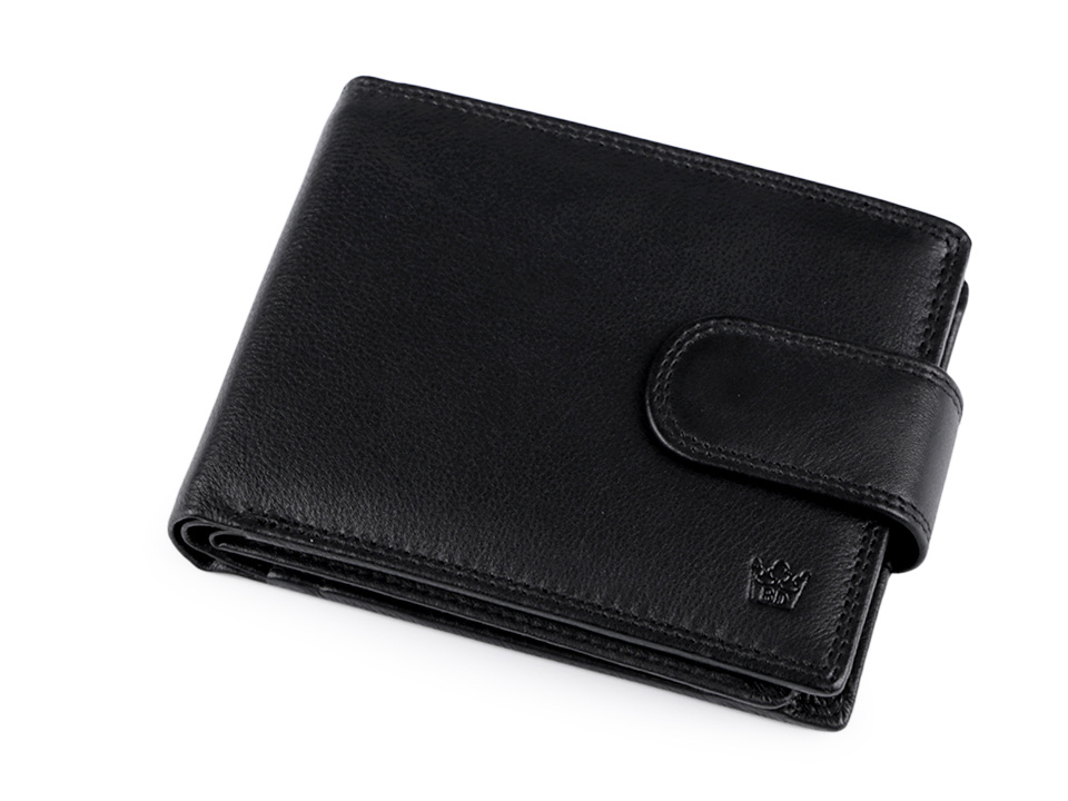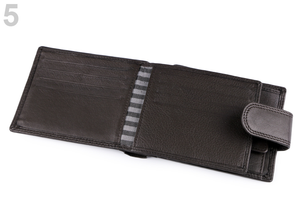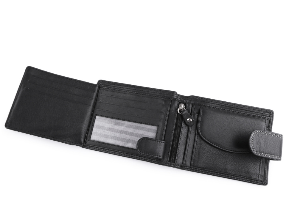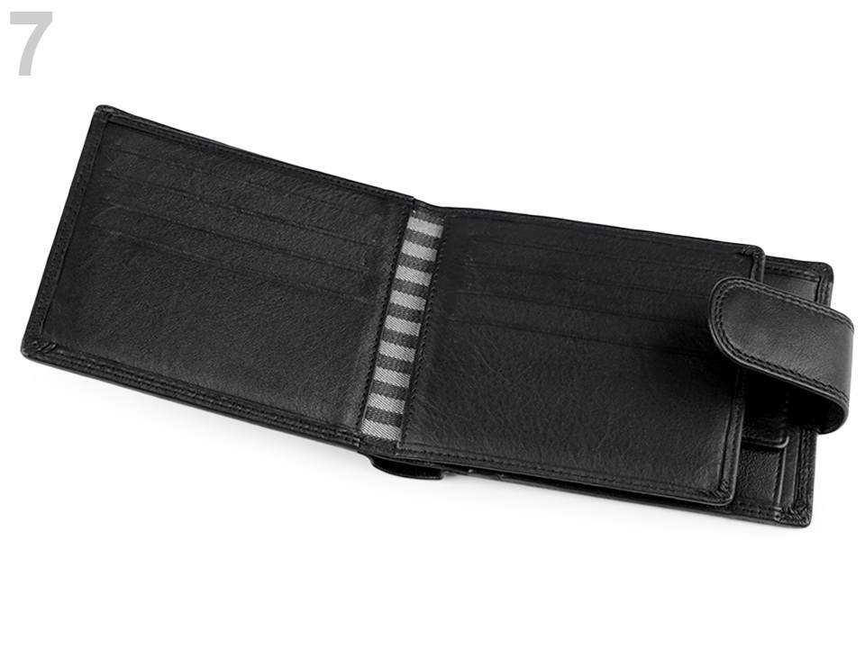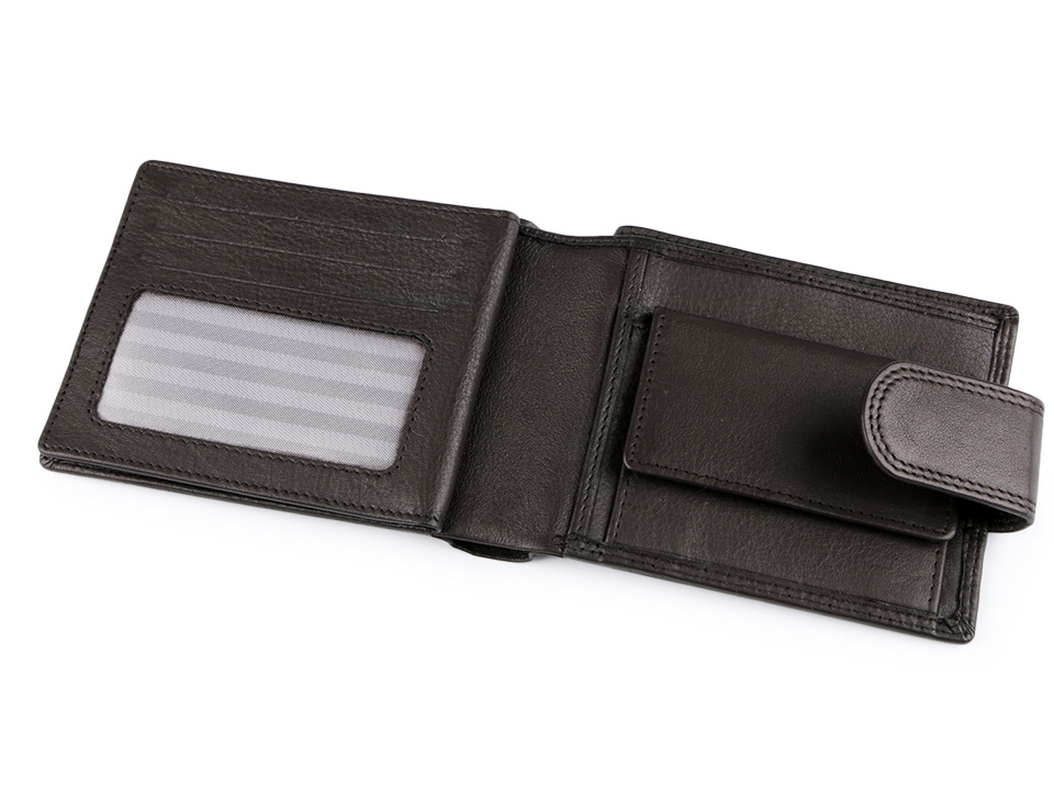 Luxusní pánská peněženka z pravé kůže má velice kvalitní provedení a chytrý design. Je pěkně a přehledně uspořádaná, lehká a příjemná na dotek. Na okraji má konstrastní štepování bílou nití. Dodáváme ji v krabičce.