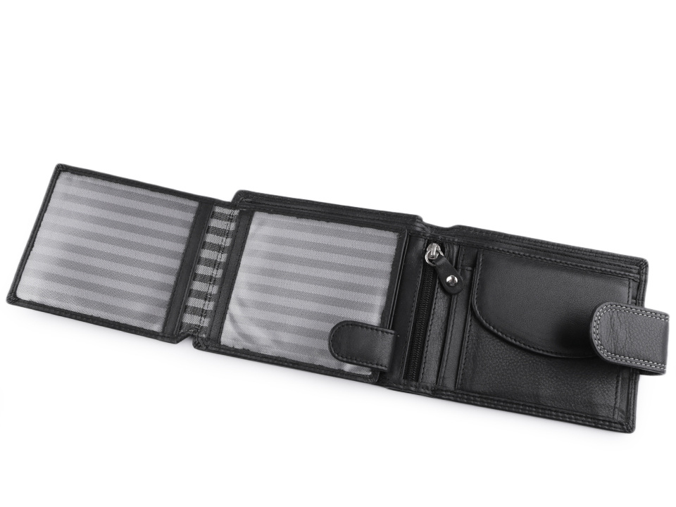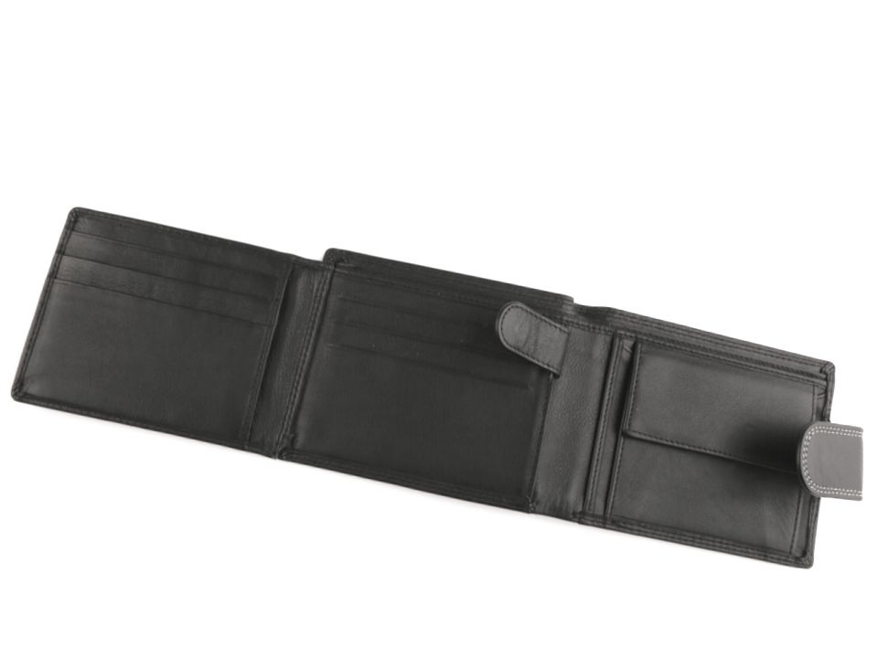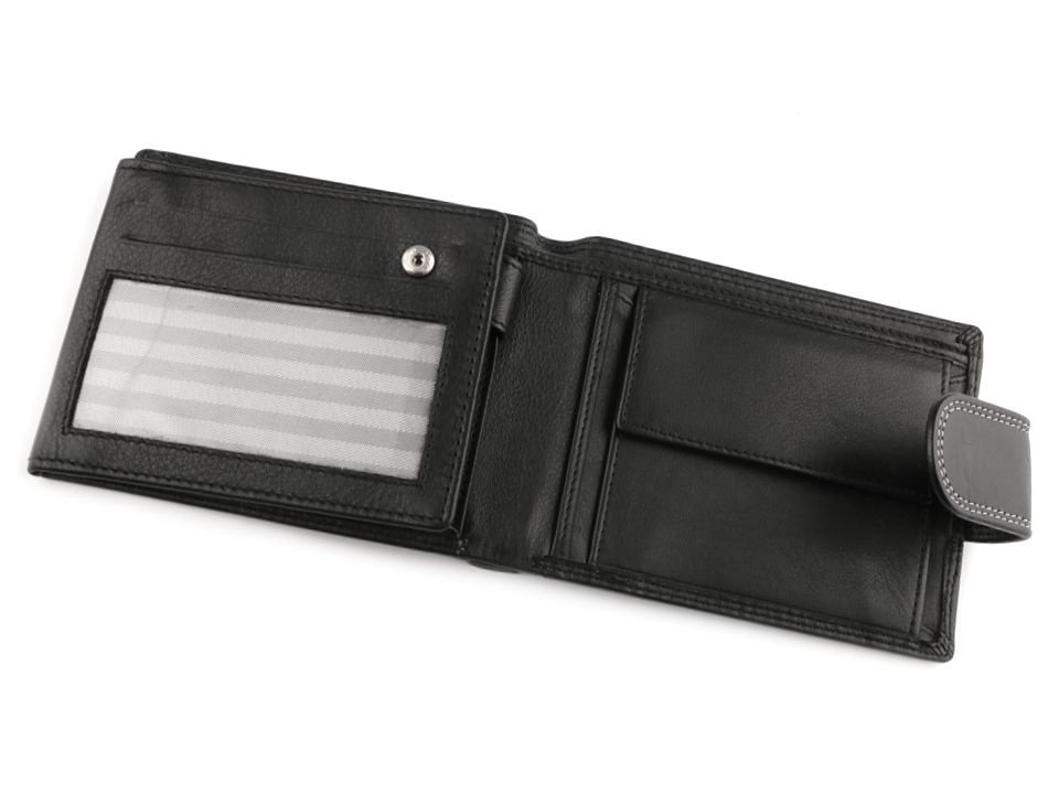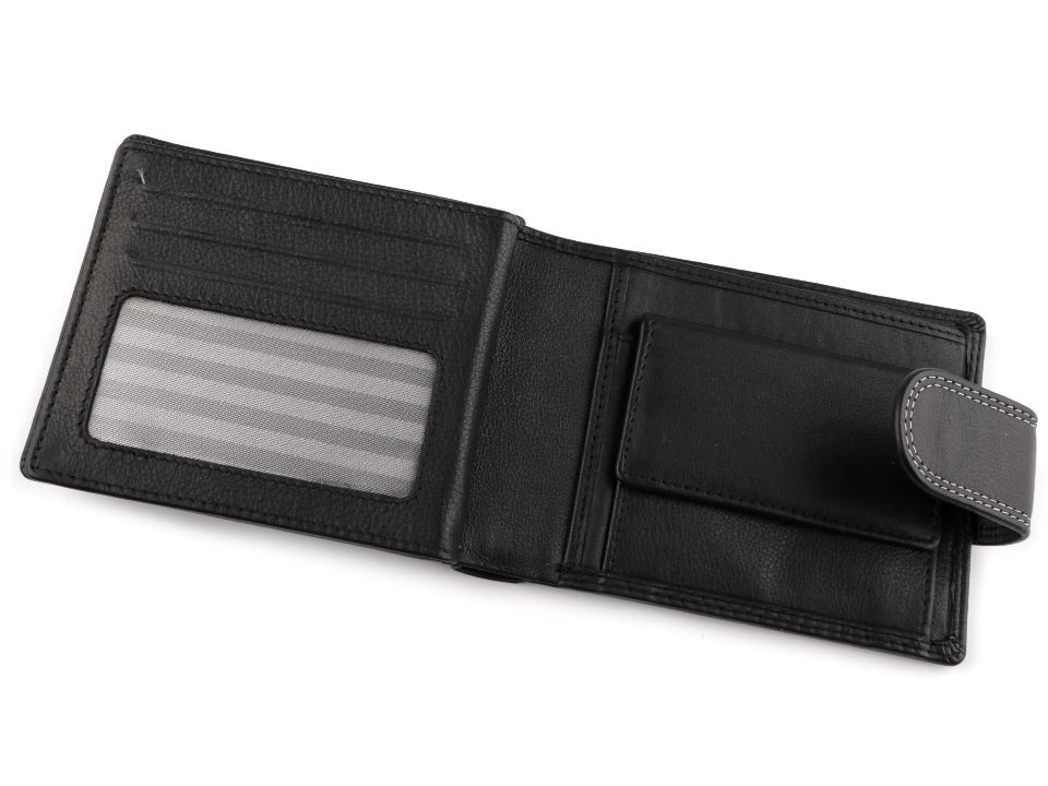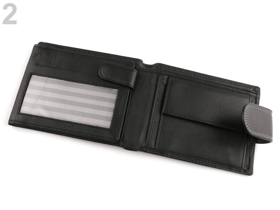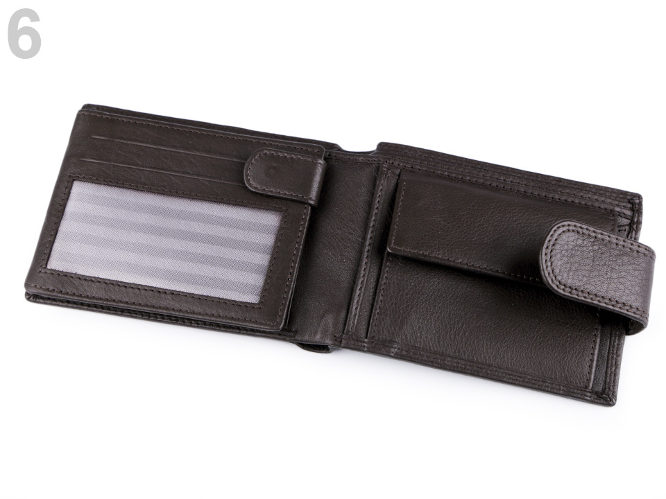 Luxusní pánská peněženka z pravé kůže má velice kvalitní provedení a chytrý design. Je pěkně a přehledně uspořádaná, lehká a příjemná na dotek. Na okraji má konstrastní štepování bílou nití. Dodáváme ji v krabičce.