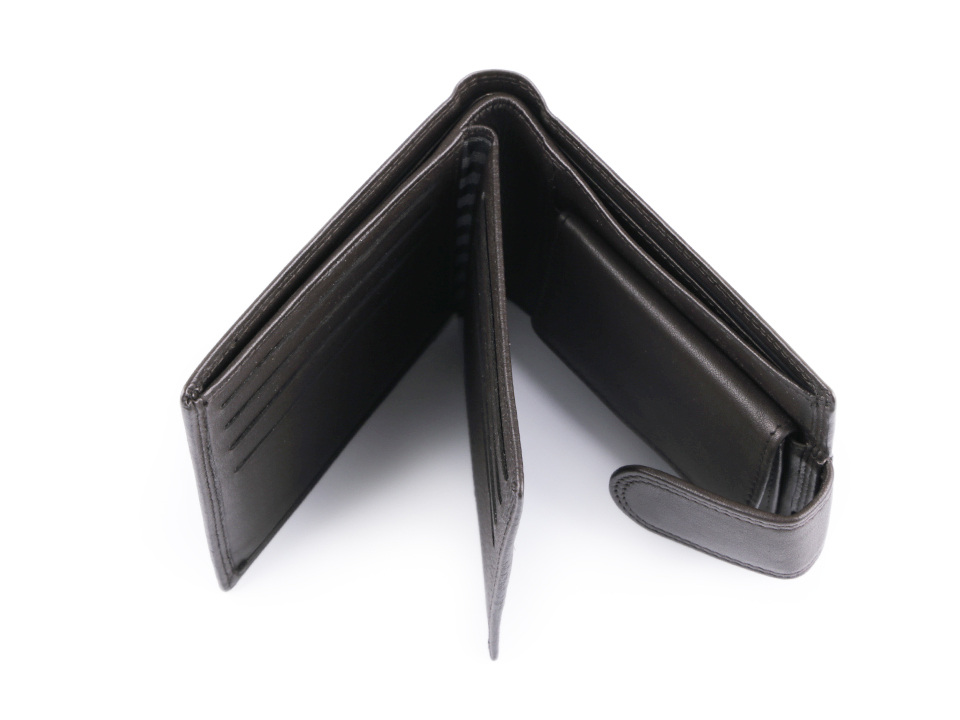 Peněženka č.1 má uzavírání na zápinku na patent, až 14 přihrádek na kreditní karty, z toho je 1 průhledná, 2 dlouhé přihrádky na rozložené bankovky. Mincovník má tvar rozkládací kapsy, zapíná se na klopu na patentku.
