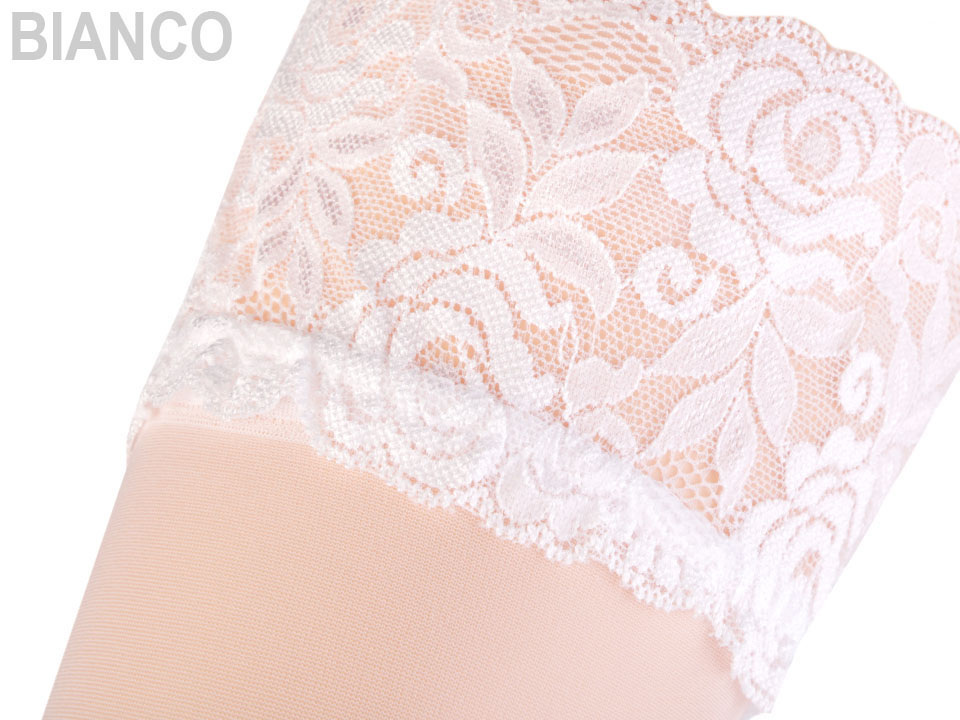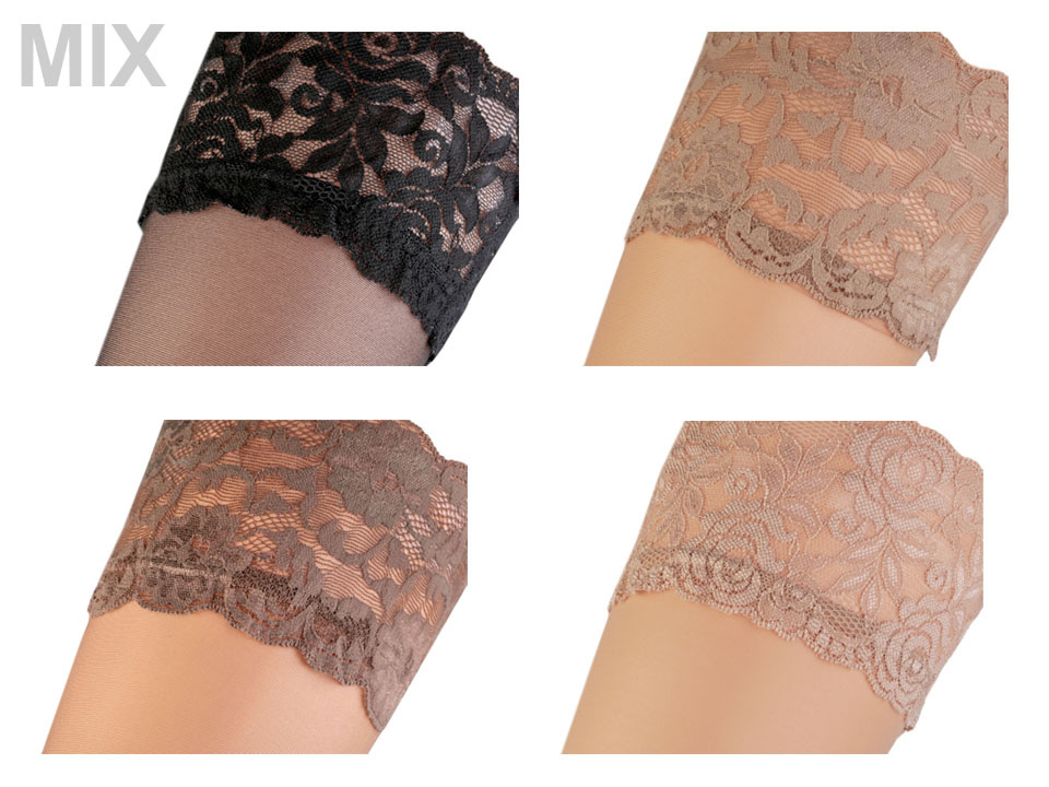 Samodržící punčochy jsou vyrobeny z nejlepší příze, díky dvěma silikonovým páskům přiléhají k noze a zvyšují svobodu pohybu. Při nošení se umocňuje fantazie a žena se stává elegantní.