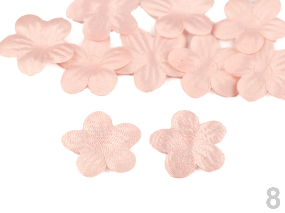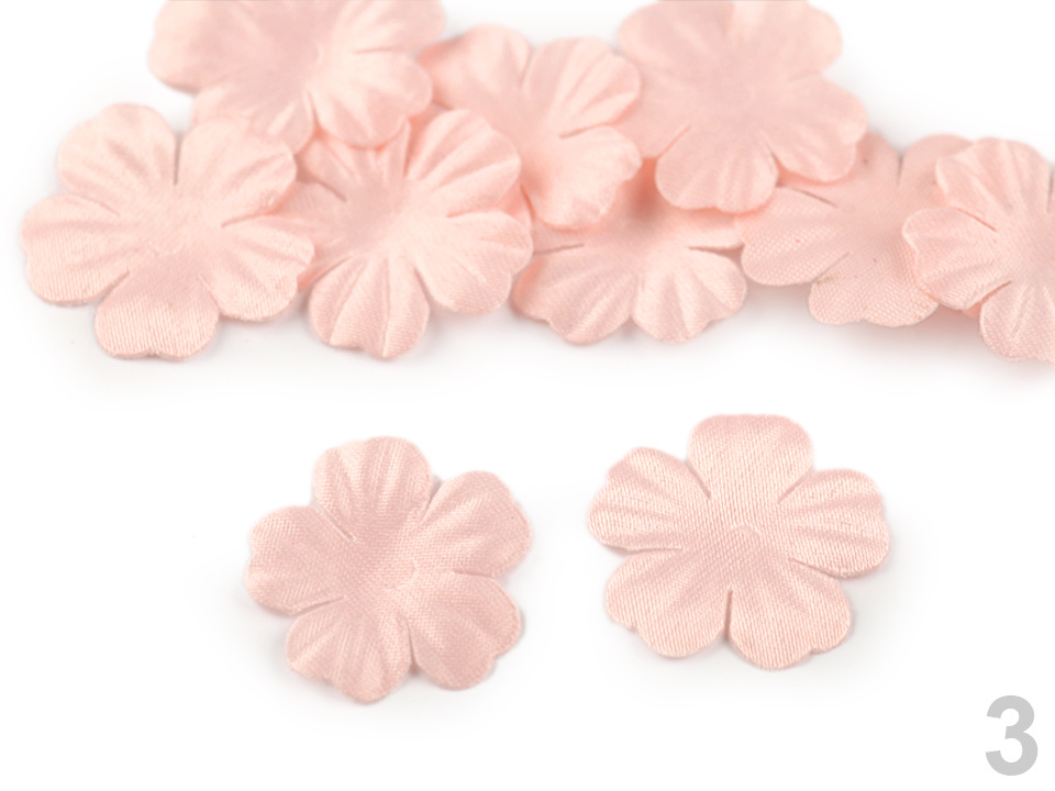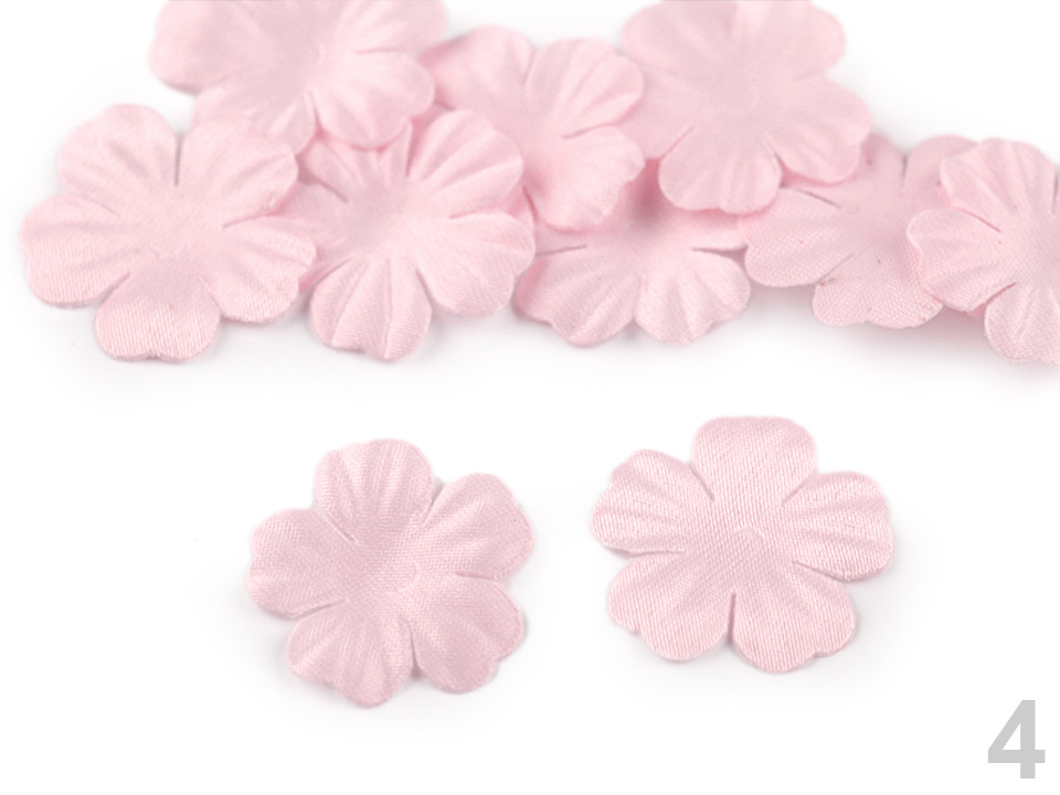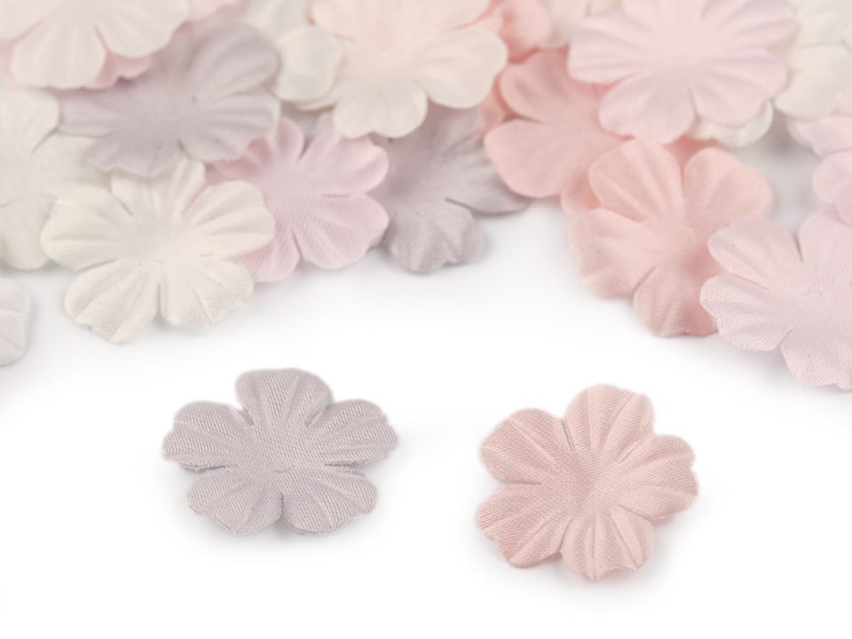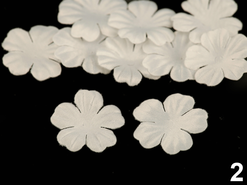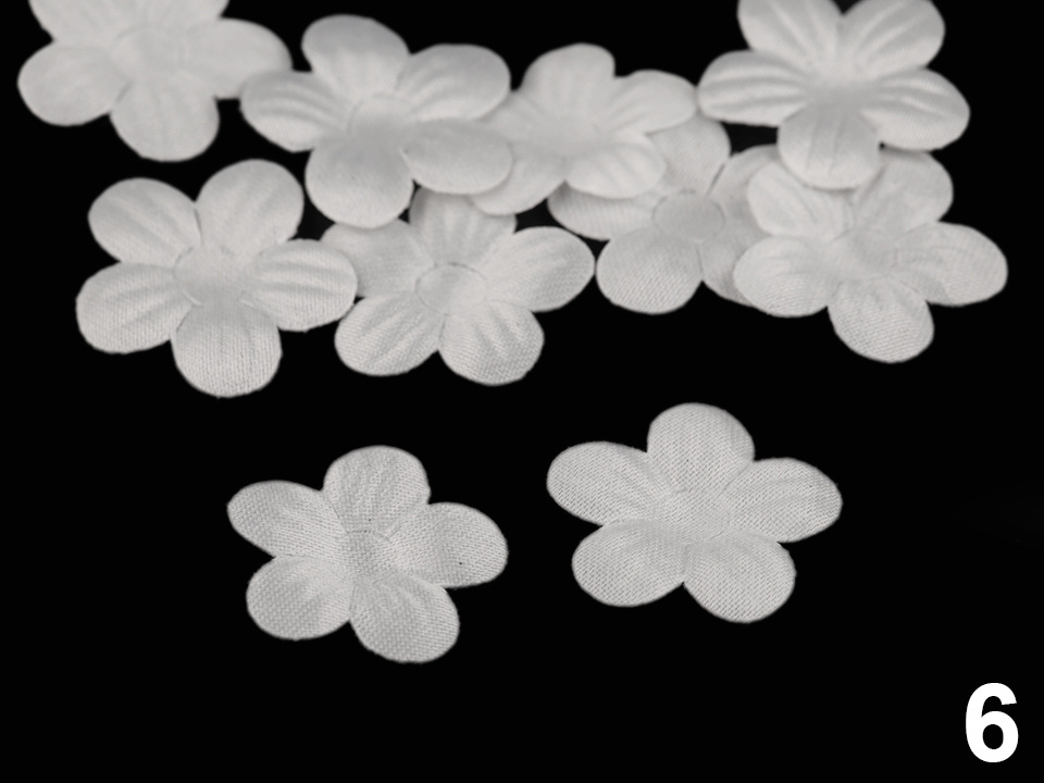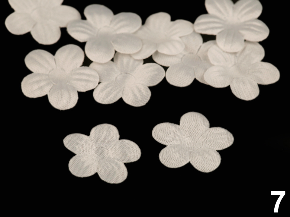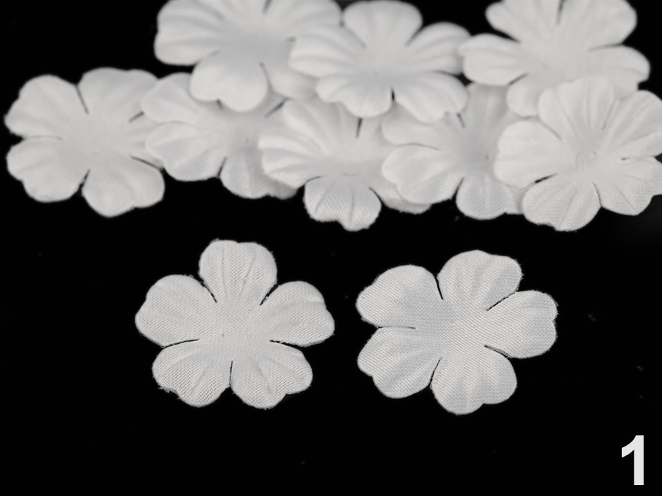 Použití: Květy vám ozdobí tašky, psaníčka, kabelky, čelenky, klobouky apod. Zajímavě vyniknou také na oděvech a slavnostních šatech. Střed doplňte broušeným kamínkem nebo korálkem, který jim dodá elegantní vzhled.