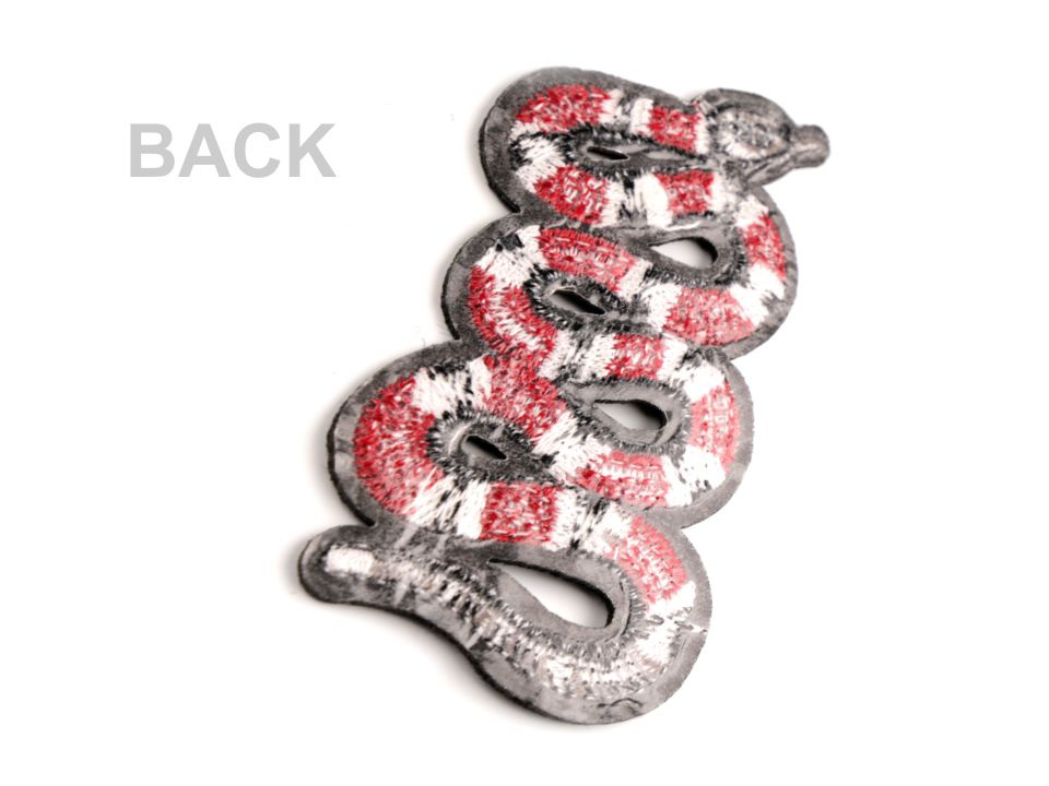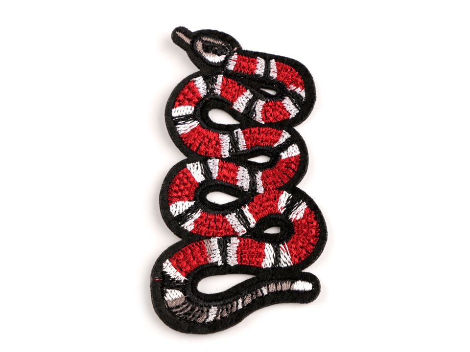 Vyšívaná nažehlovačka s motivem hada zaujme malé i větší rebely. Může být aplikována na saka, trička, riflové oděvy, košile, mikiny, batohy či tašky. Na oděvu bude po nažehlení pevně držet díky polyetylénovému lepidlu.