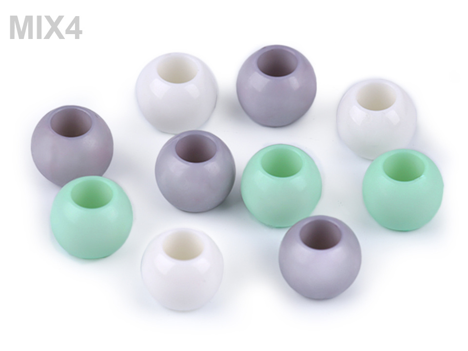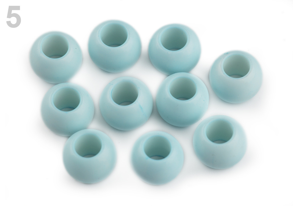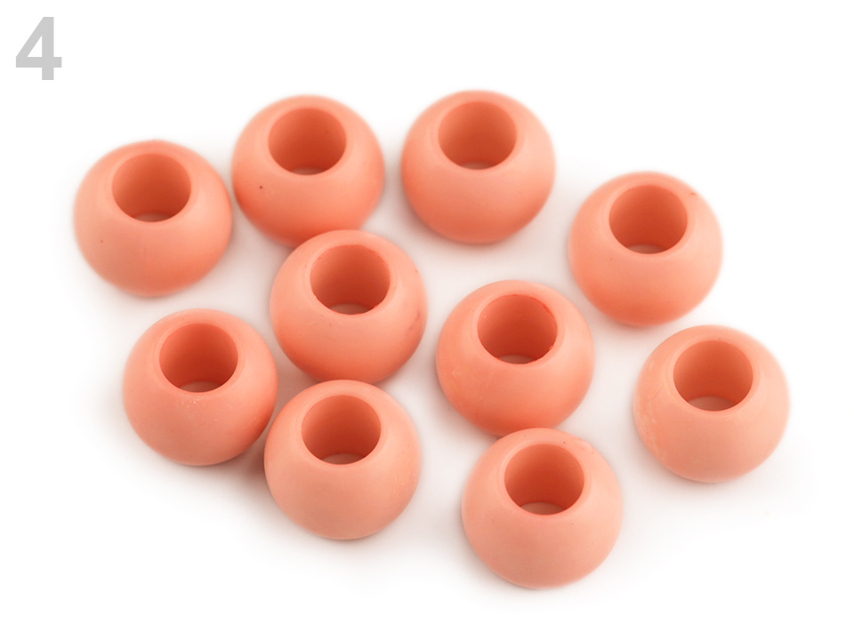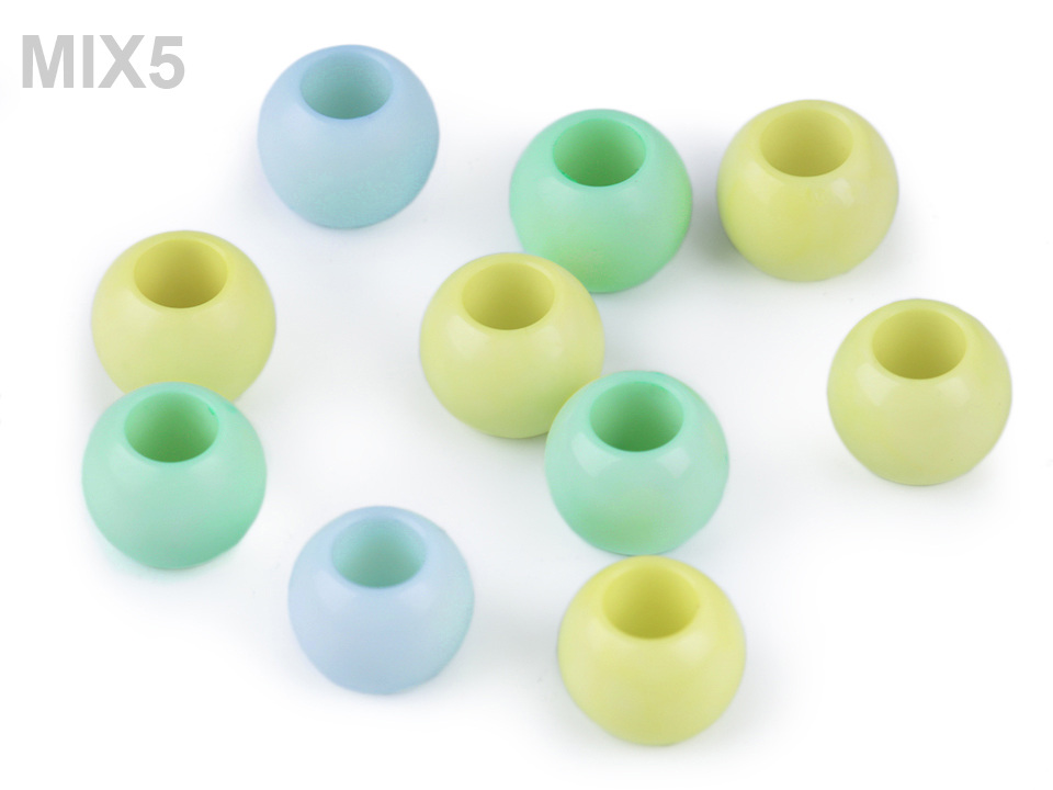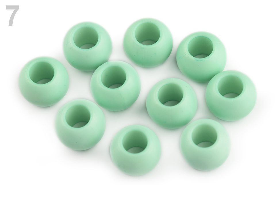 Plastové korálky s velkým průvlekem jsou jemně lesklé, povrchově barvené.