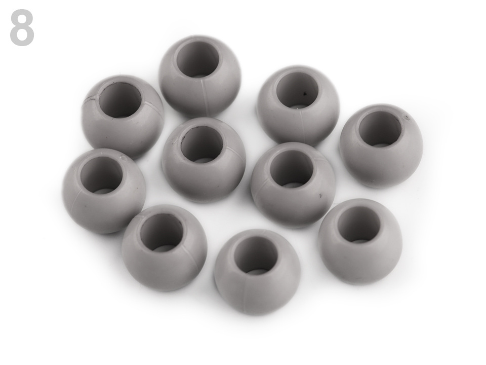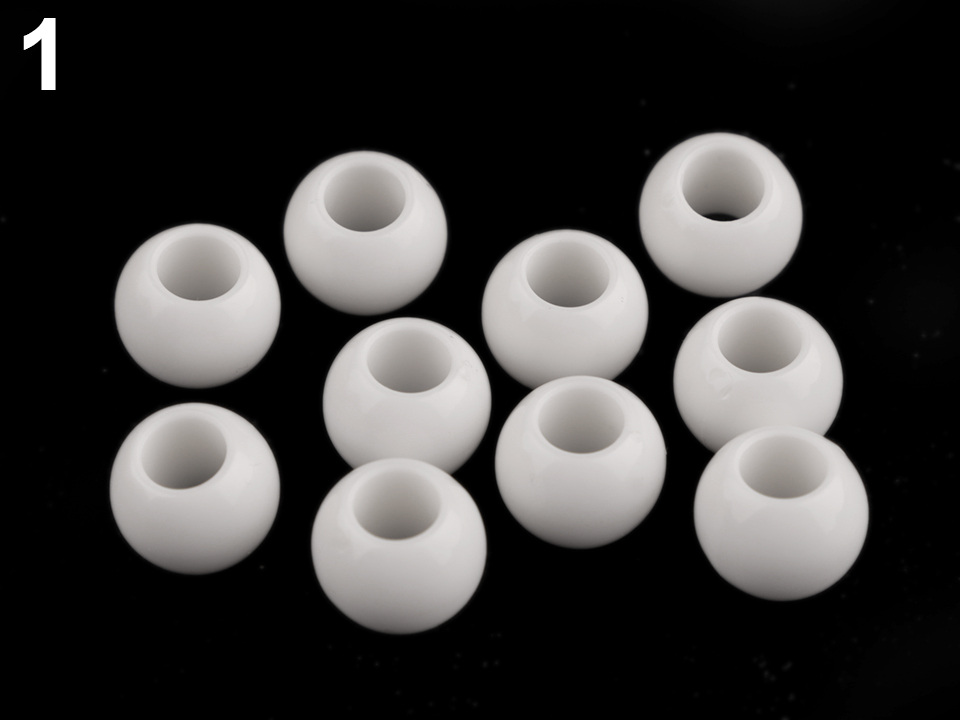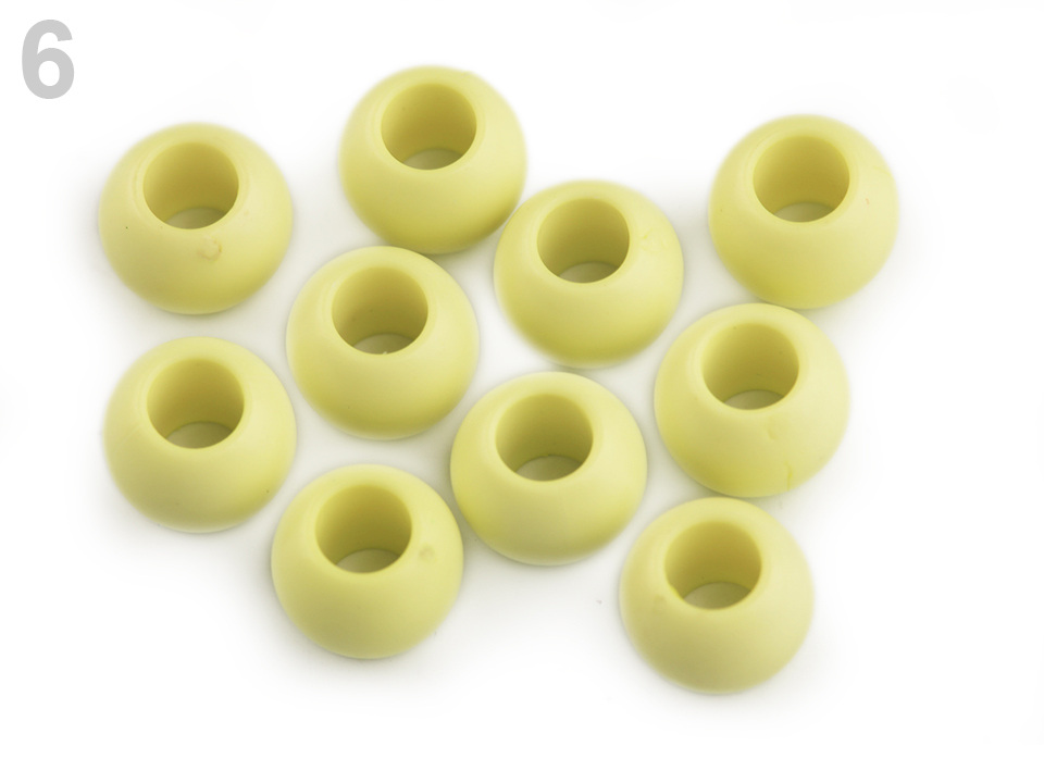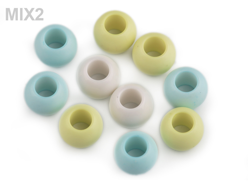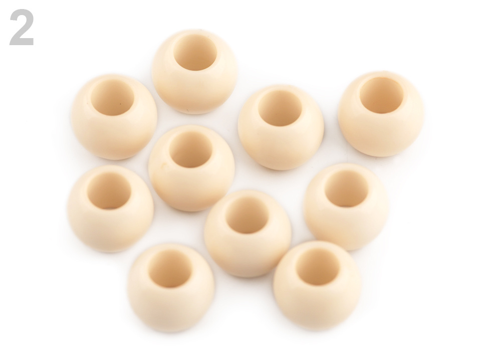 Plastové korálky s velkým průvlekem jsou jemně lesklé, povrchově barvené.