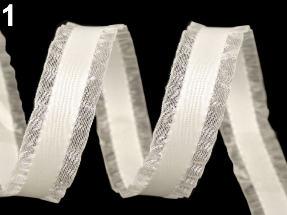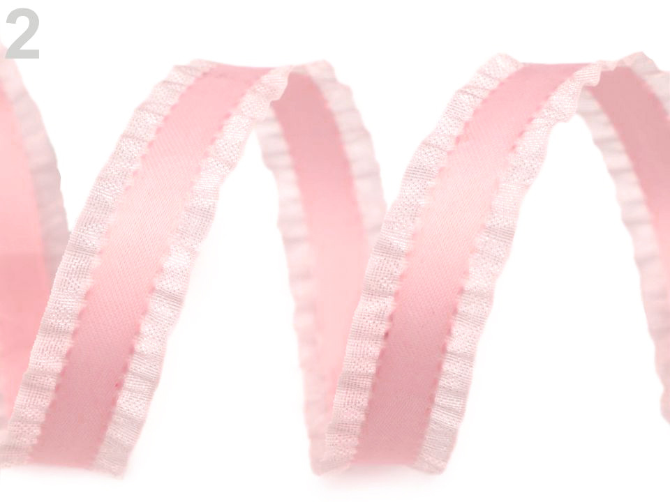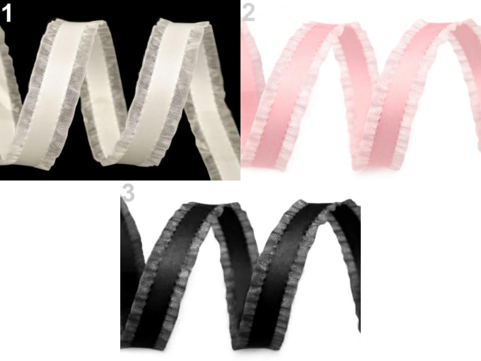 Saténový prýmek / stuha zaujme díky jemnému třpytu a romantickým volánkům na jeho okrajích. Bude skvělou ozdobou vašich oděvů, módních doplňků nebo dekorací.