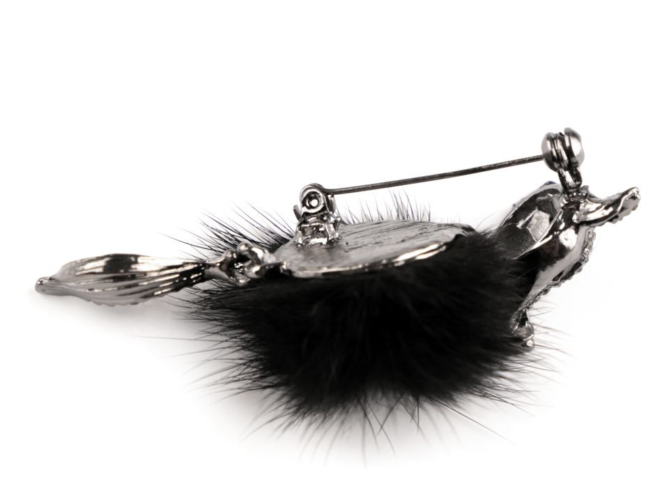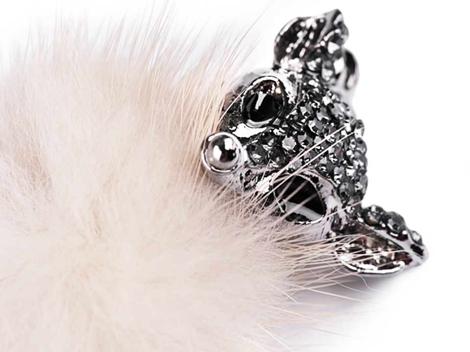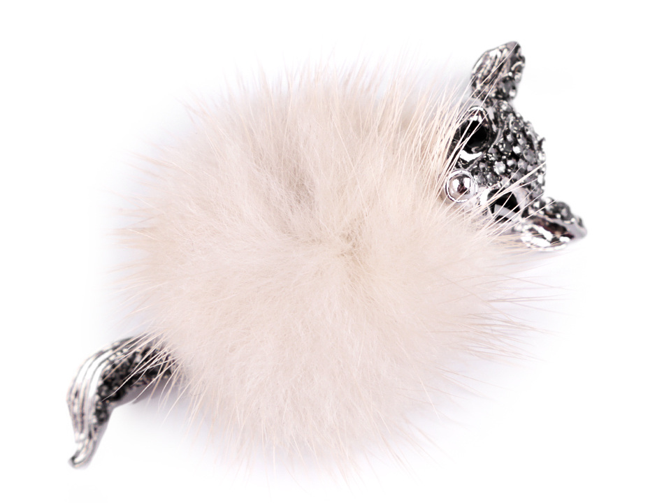 Elegantní brož s liškou a bambulkou z pravé kožešiny bude nevšedním doplňkem vašeho oděvu. Díky třpytivým broušeným kamínkům a pohyblivému ocásku skvěle dozdobí košile, saka, svetry, kabelky či čepice.