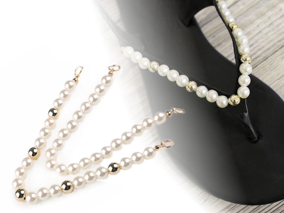 Perlová ozdoba dodá vašim oděvům nádech luxusu. Na koncích jsou kovová očka, díky kterým ozdobu jednoduše přišijete k textilu. Díky svému elegantnímu lesku se bude vyjímat na šatech, halenkách nebo svetřících. Můžete ji našít jako ozdobu výstřihu, kapes či rukávů. Perly budou také skvělou dekorací na botách, kabelkách nebo kloboucích.