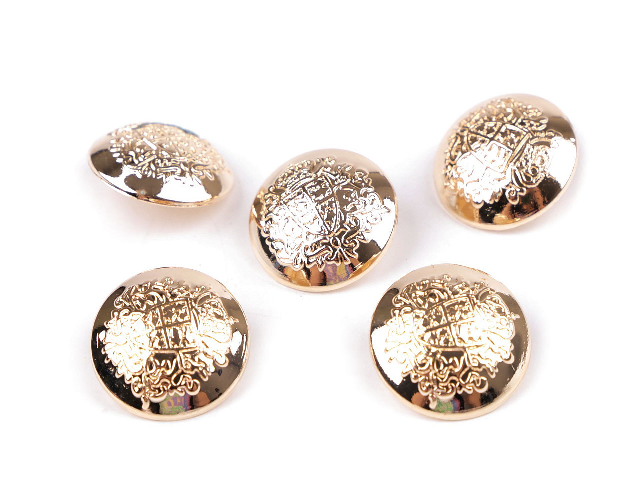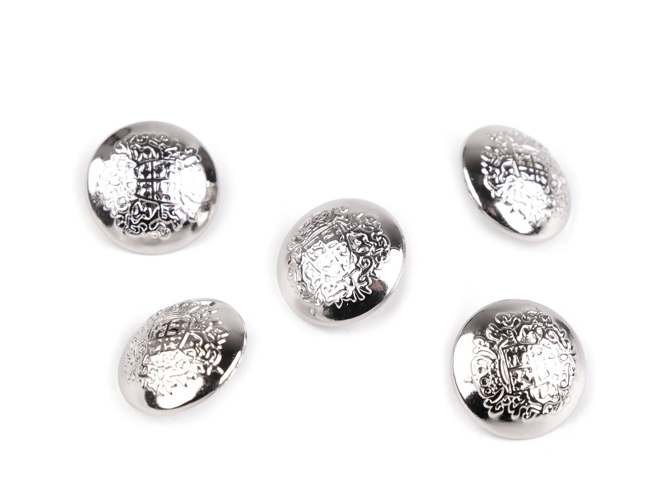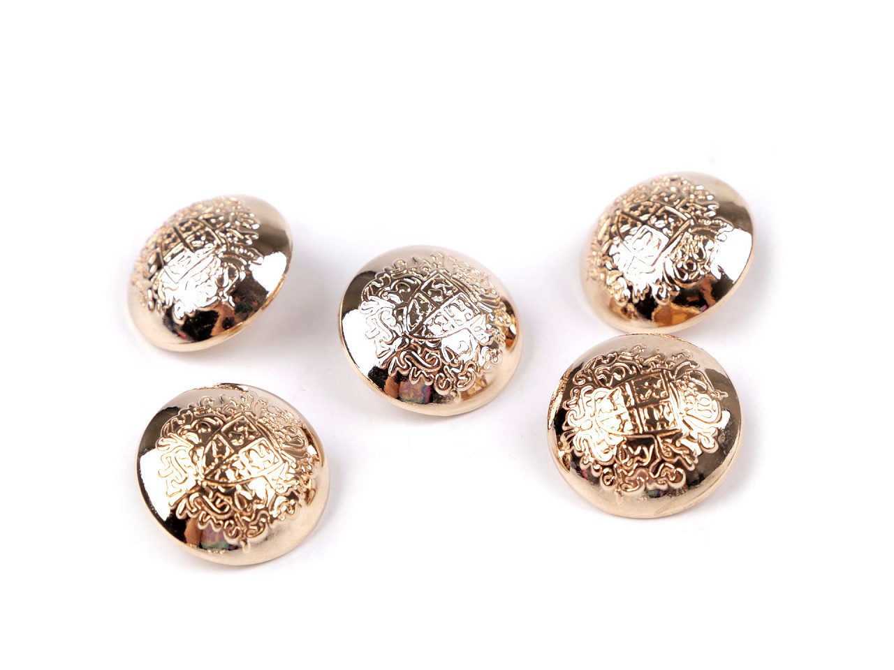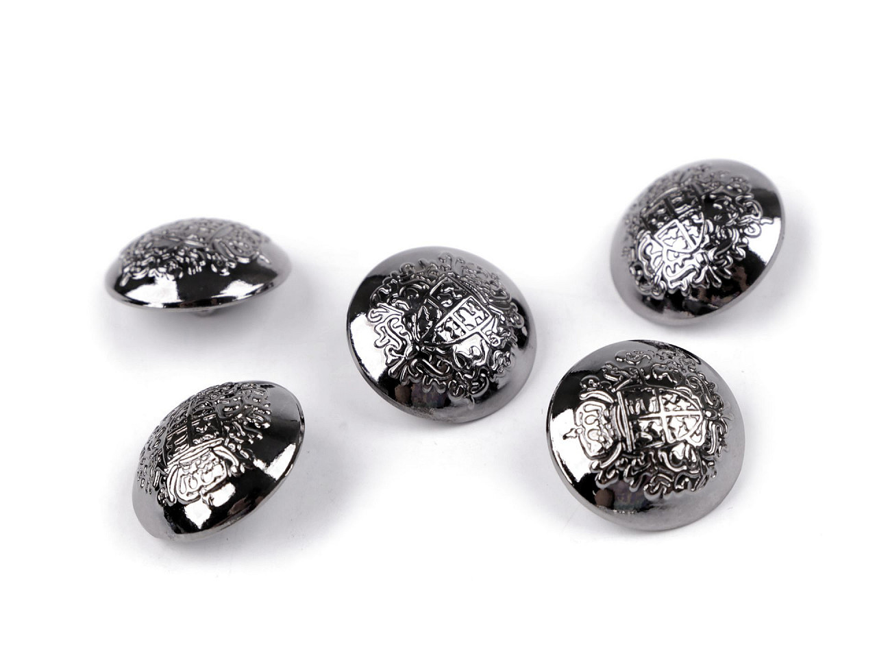 Kovové knoflíky se kromě praktického využití stanou elegantním doplňkem vašeho oděvu. Knoflíky se spodním přišíváním skvěle vyniknou na saku nebo kabátku vojenského stylu. Díky vyobrazenému erbu se také výborně hodí k přišití na uniformy, myslivecké oblečení či dobové kostýmy.