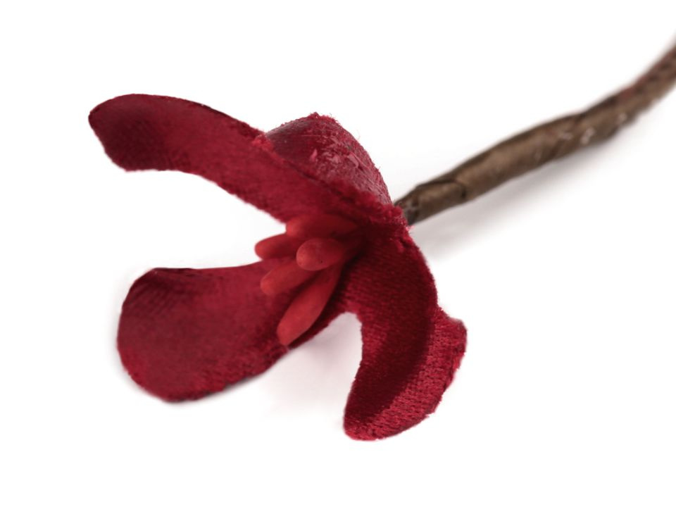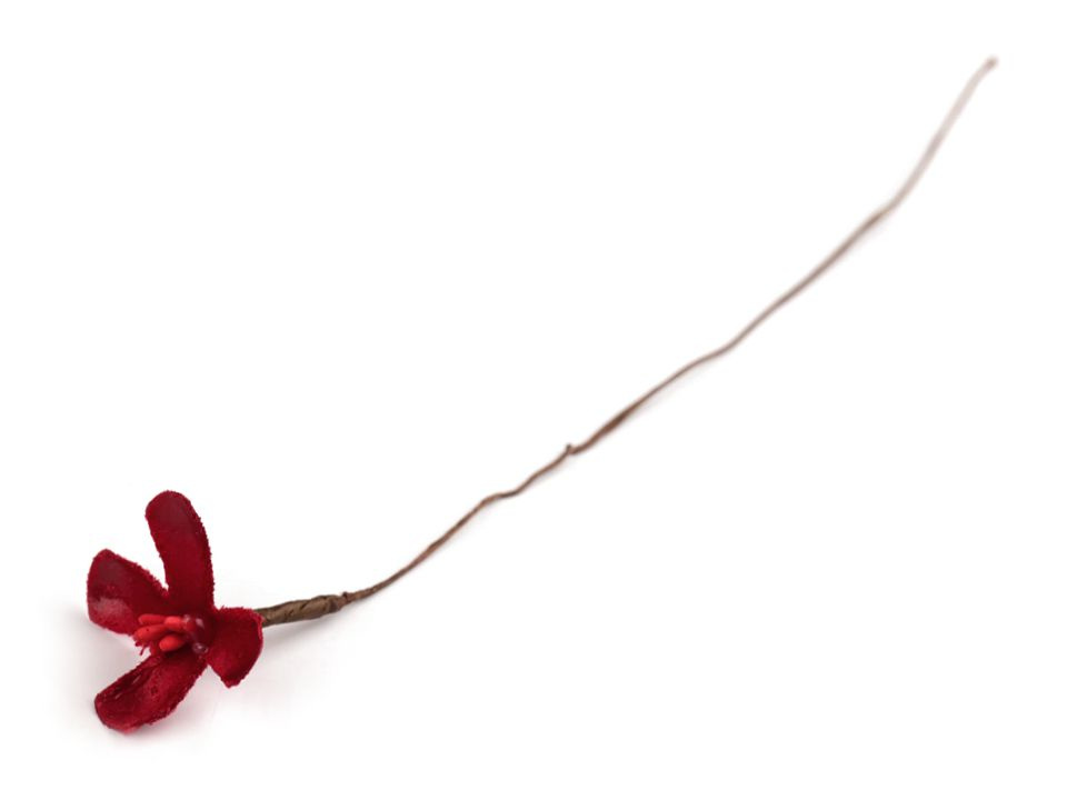 Luxusní saténové květy svou něžností dokonale dotvoří květinové dekorace a aranžmá. Jednotlivé květy jsou ozdobeny pestíky a připevněny k ohebnému drátku omotaném floristickou páskou, umožňující snadnou manipulaci a lehkou tvarovatelnost. Květy jsou vyrobené z látky s velmi vysokou gramáží.