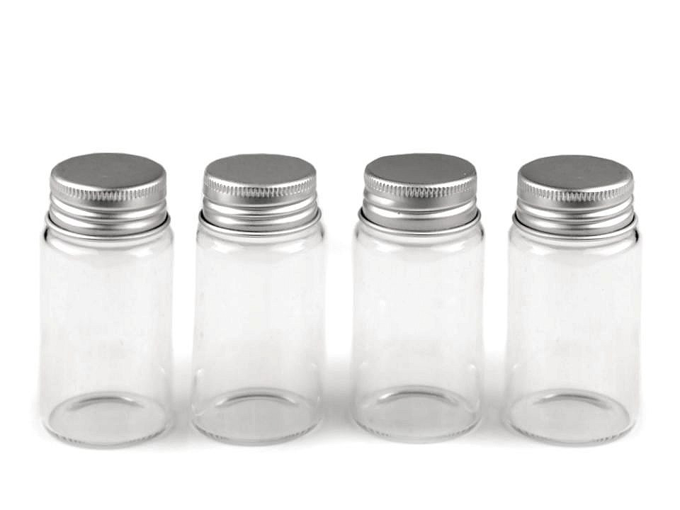 Skleněnou dózičku s kovovým uzávěrem využijete k dekoračním i praktickým účelům. Cestovatelům se bude hodit k přenosu menšího objemu tekutin, šampónů, sprchových gelů, apod. Ocení ji výrobci domácí kosmetiky nebo výrobci šperků z bižuterie, kteří ji využijí k uložení jednotlivých bižuterních komponentů. Dózička ma šroubovatelný kovový uzávěr, který zamezuje vytékání tekutin.
