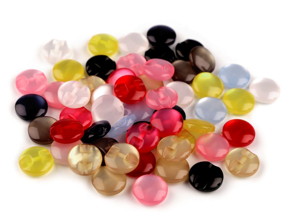 Barevné knoflíky okouzlí děti i dospělé. Díky efektu kočičích očí vyniknou na halenkách, šatech nebo svetrech. Knoflíky jsou mírně vypouklé a mají spodní přišívání.