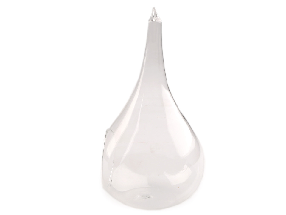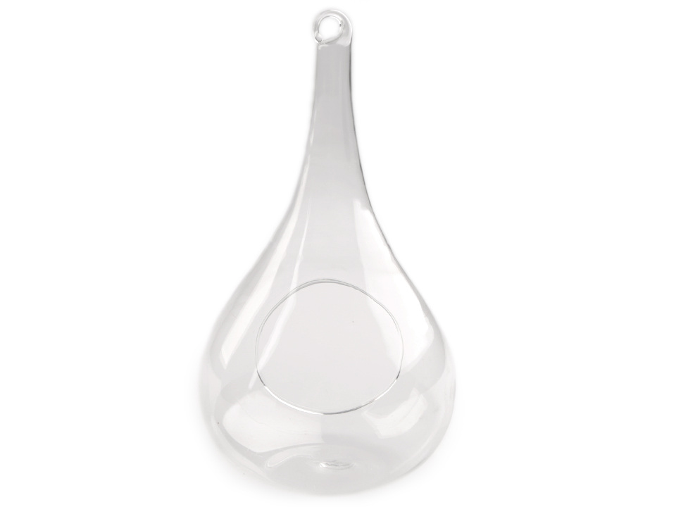 Skleněné aerárium ve tvaru kapky má v horní části očko, do kterého můžete provléknout provázek a pověsit ho na trám nebo na háček na stěně. Díky plochému dnu má aerárium také dobrou stabilitu, takže je vhodné i k aranžování stolu. Dovnitř můžete naskládat sukulenty a jiné rostlinky, písek, kamínky apod.