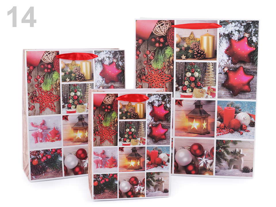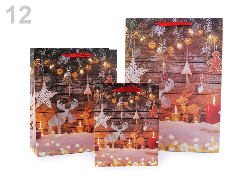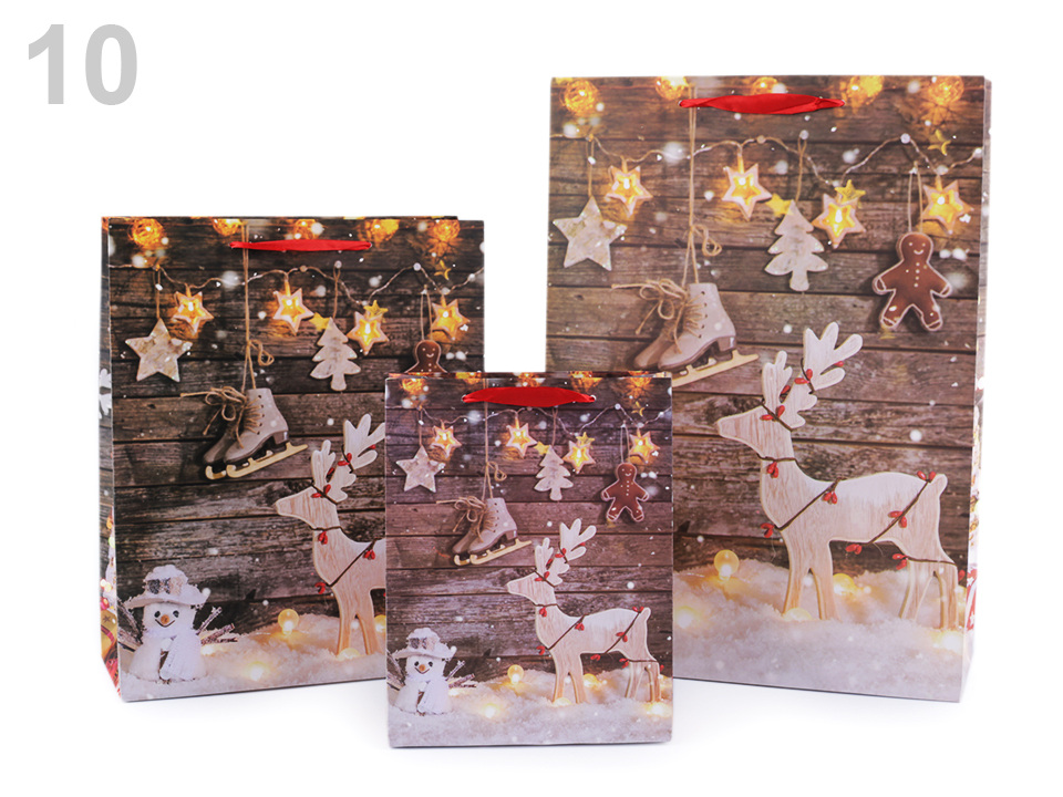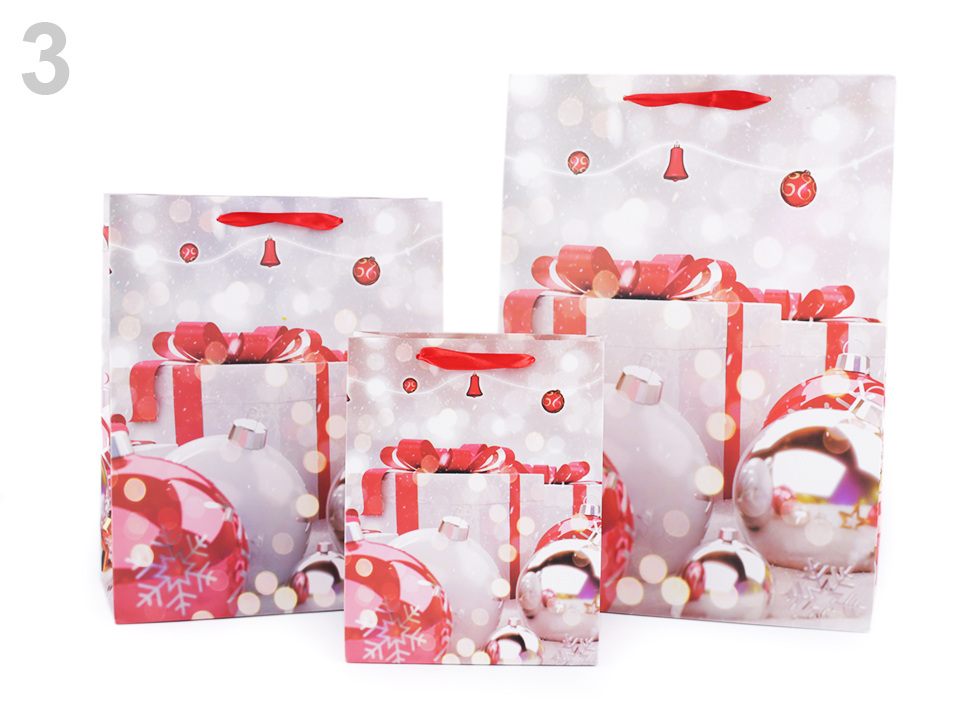 Sadu malé, střední a velké dárkové tašky oceníte na rychlé zabalení dárků. Z obou stran jsou ozdobené potiskem s vánočními motivy. Každá sada má motiv stejný na všech taškách.