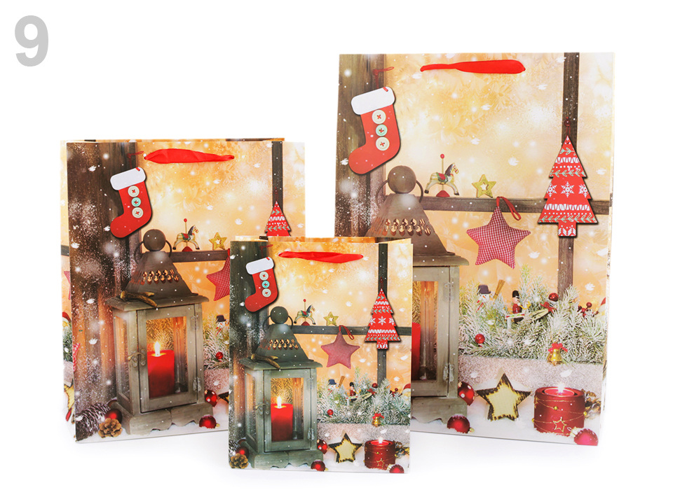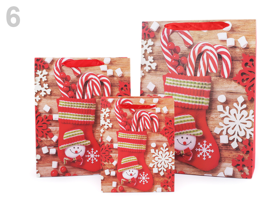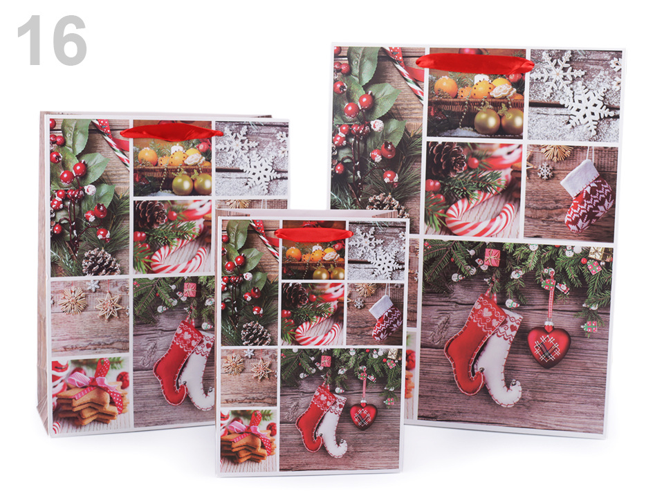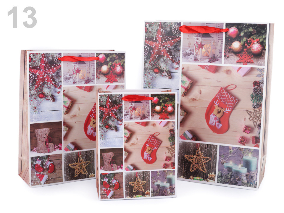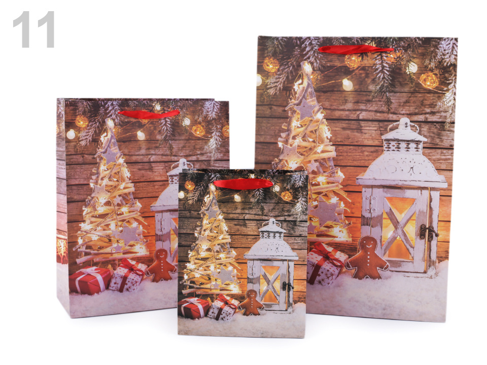 Sadu malé, střední a velké dárkové tašky oceníte na rychlé zabalení dárků. Z obou stran jsou ozdobené potiskem s vánočními motivy. Každá sada má motiv stejný na všech taškách.