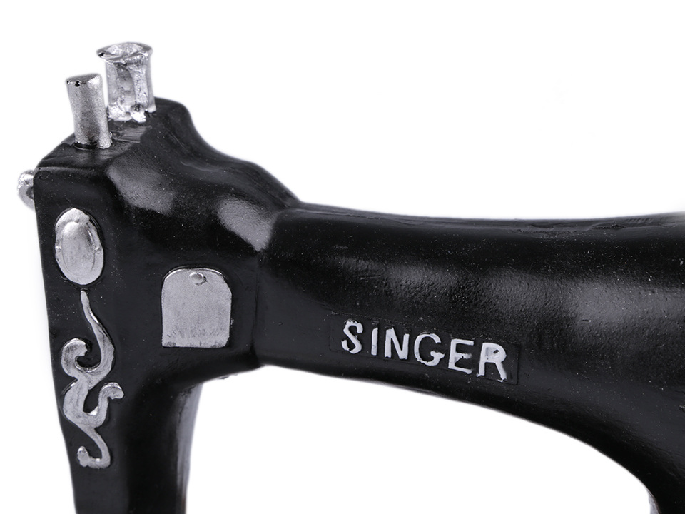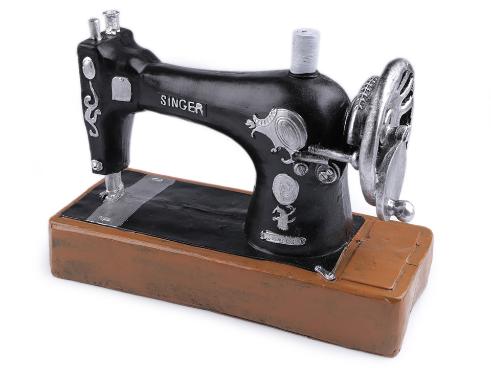 Netradiční dekoraci v designu šicího stroje Singer si zamilují všechny švadlenky. Můžete ji použít i jako pokladničku. Ve spodní části má otvor pro pozdější vyndavání nastřádaných peněz. Šicí stroj poslouží také jako dekorace výloh prodejen.