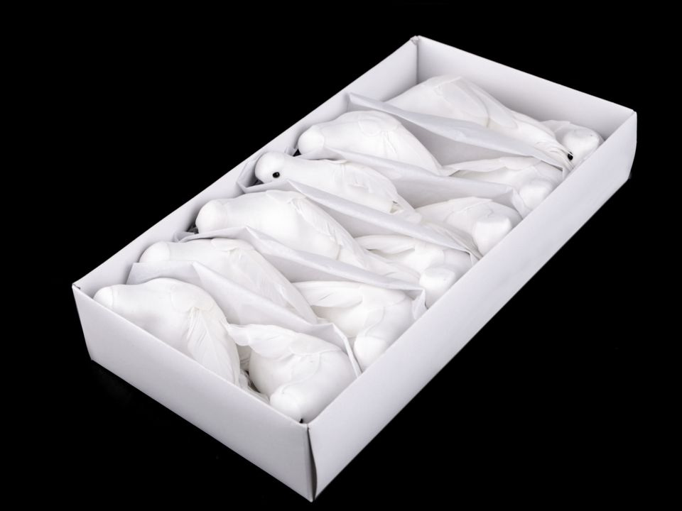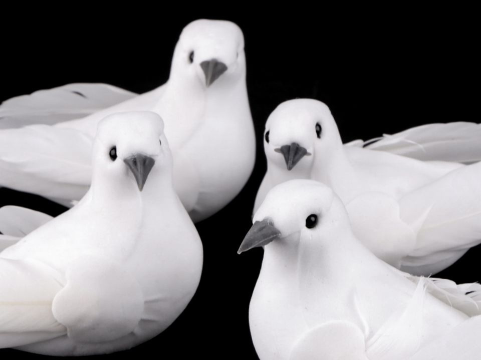 Romantická holubice vynikne nejen na svatebních dekoracích, ale také na zimních. Můžete ji nalepit na věnce, květinová aranžmá, ikebany i na krabičky. Holubice nemá klip.