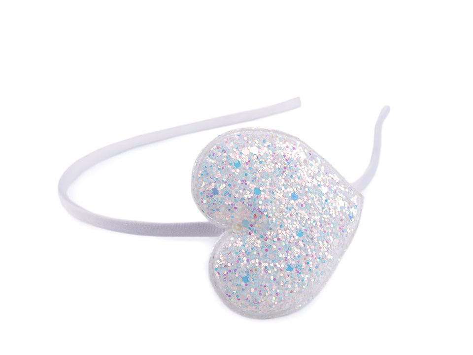 Čelenka se srdcem zaujme každou malou či větší slečnu. Odzdobí vlasy všech barev díky glitrům, které se kouzelně třpytí.