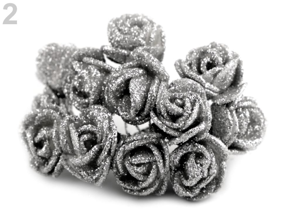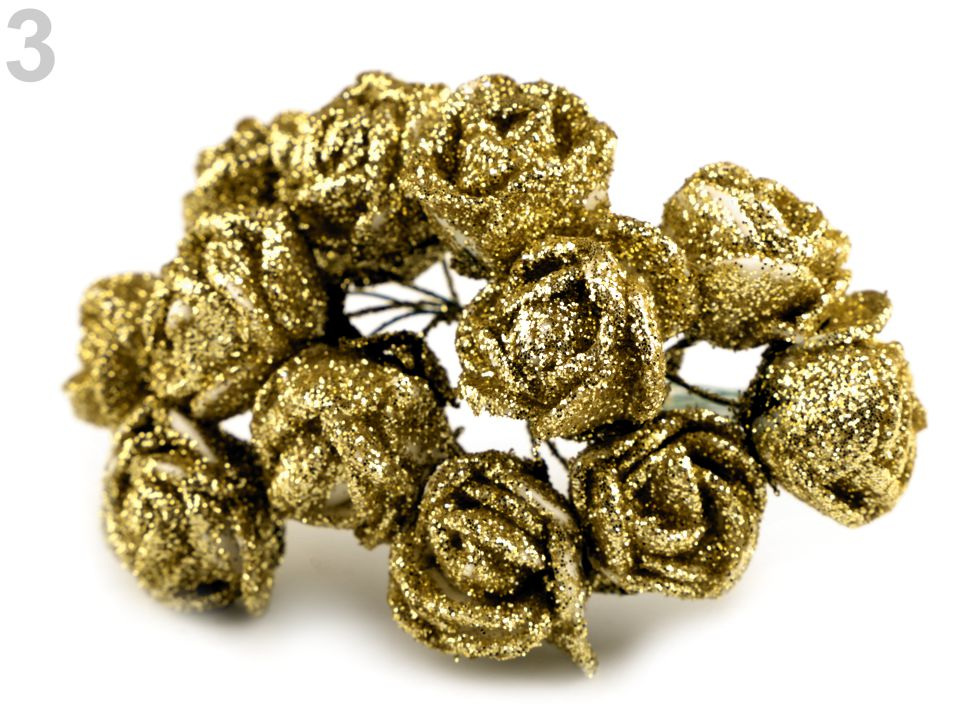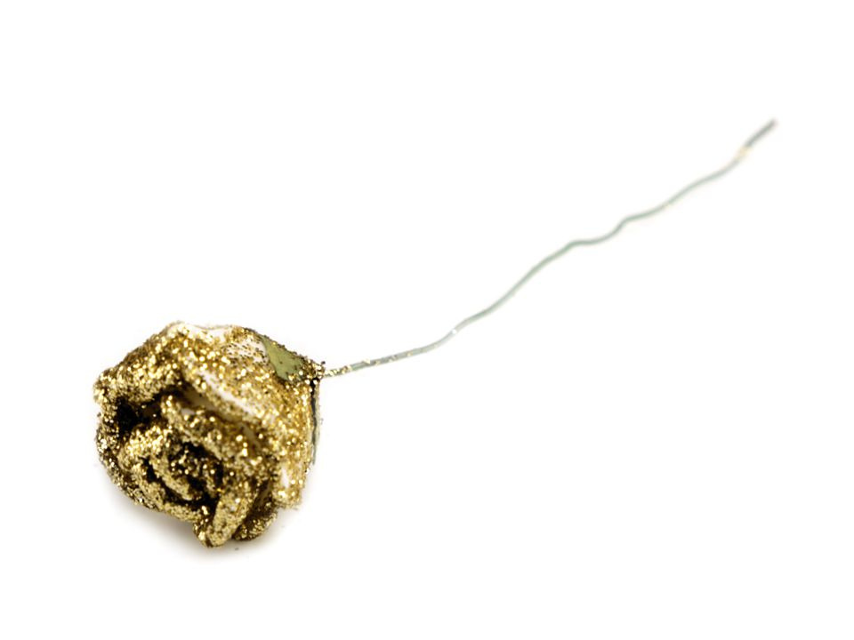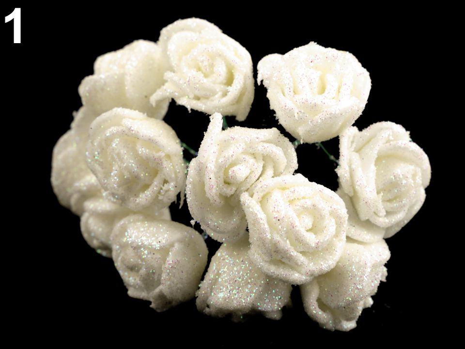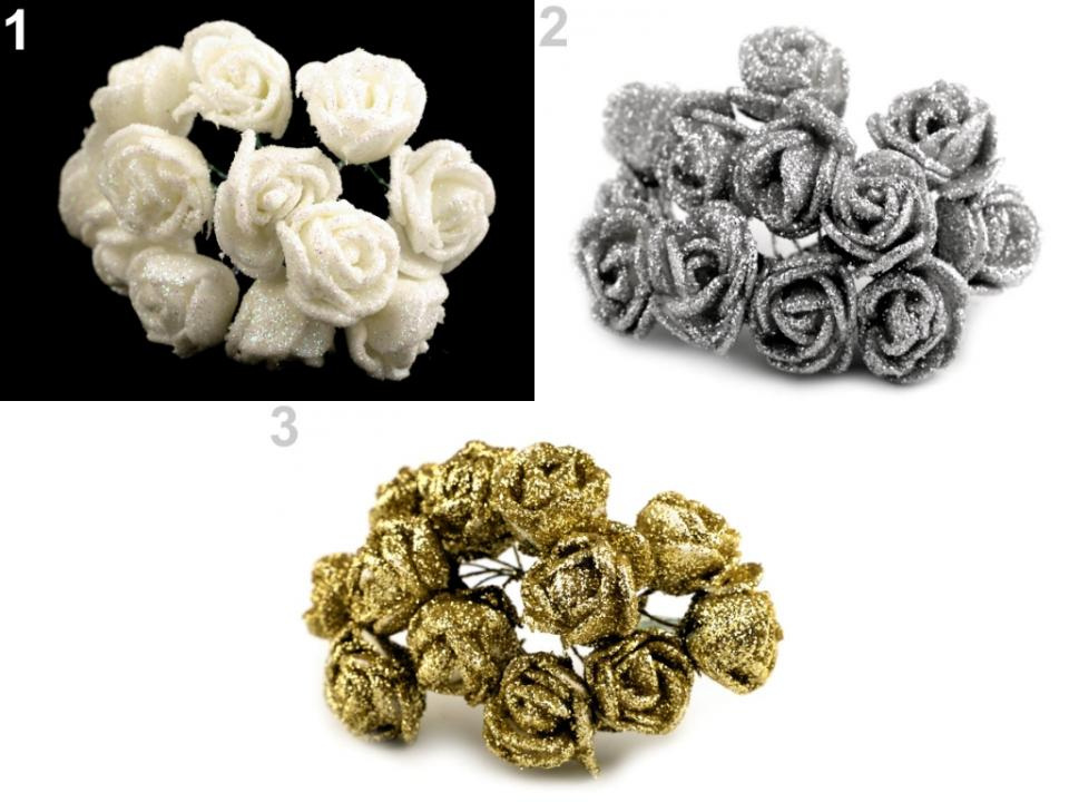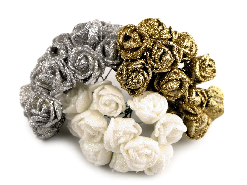 Dekorační růžičky se třpytkami se skvěle hodí na výrobu vánočního či svatebního aranžmá. Povrch jednotlivých růžiček je zdobený oslnivými glitry, které jim dodávají nádech luxusu a elegance. Květy jsou připevněné k drátku, který můžete lehce tvarovat.