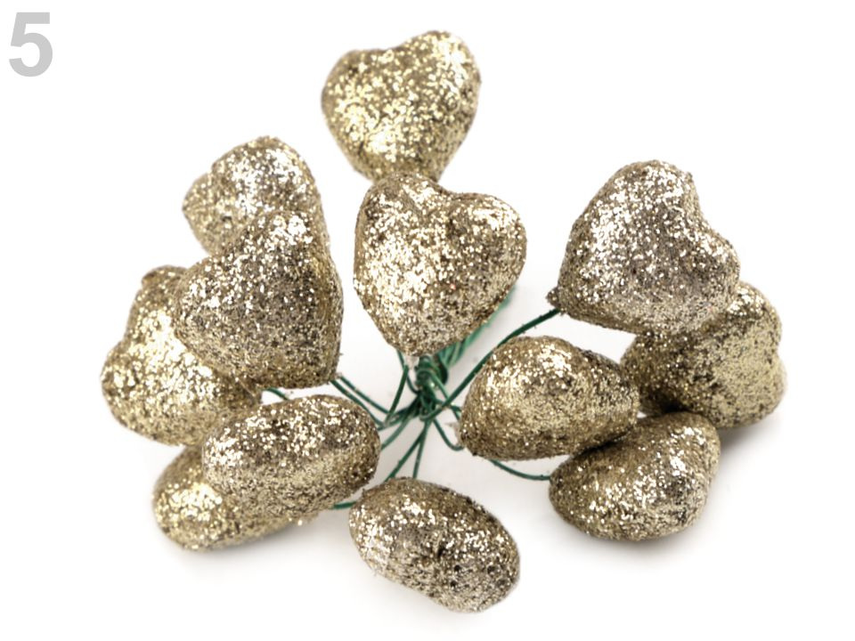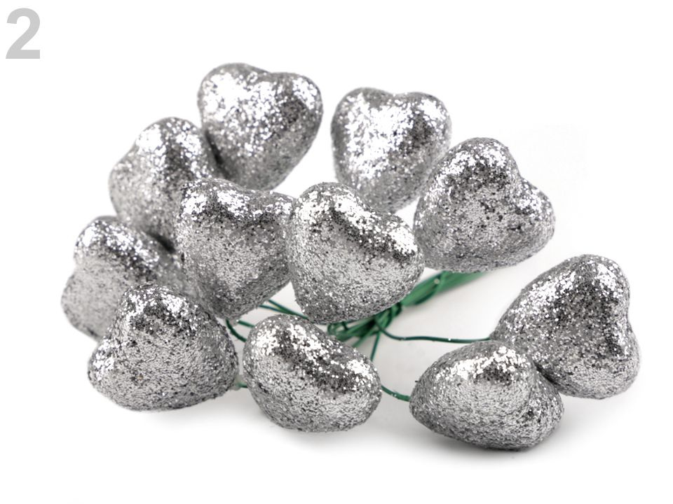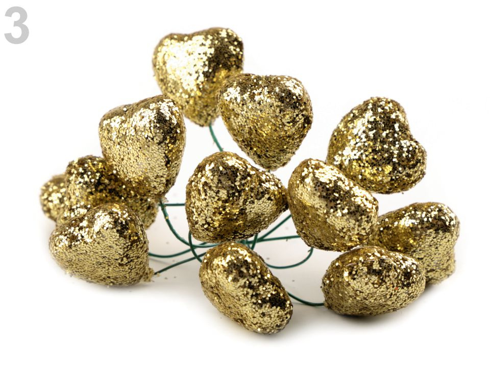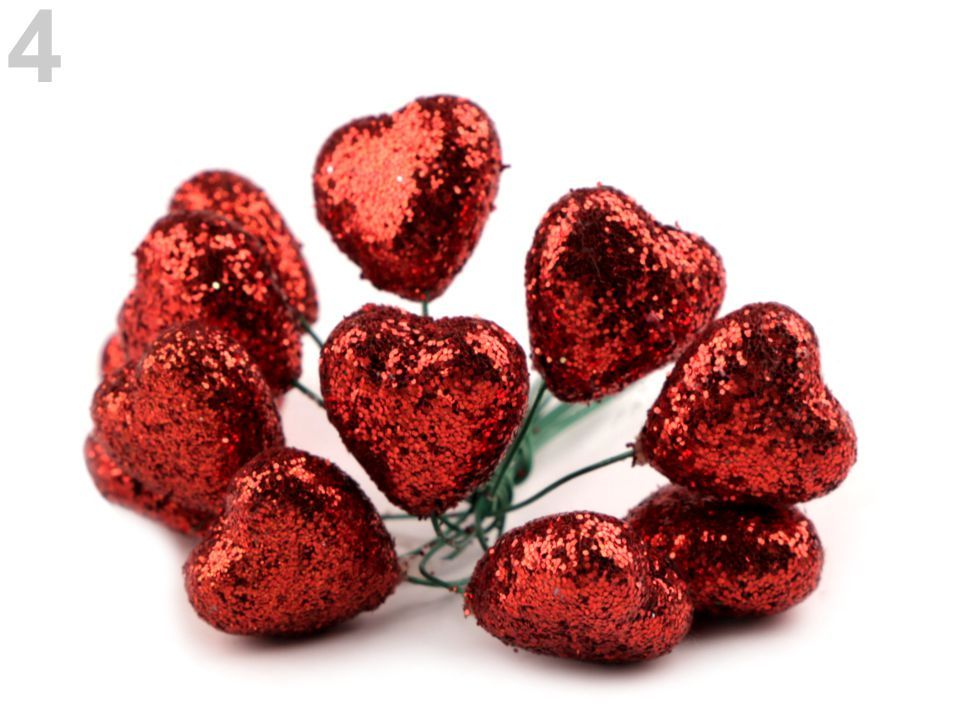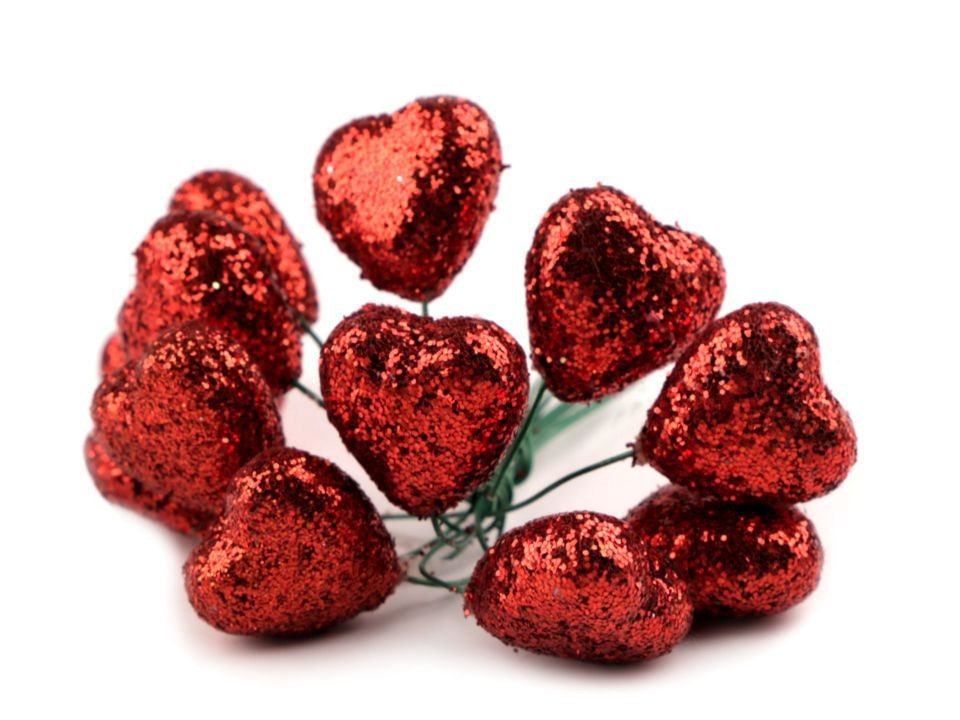 Dekorační srdíčka s glitry využijete převážně k aranžování. Jsou připevněná k ohebnému drátku, kterým lze lehce manipulovat.
