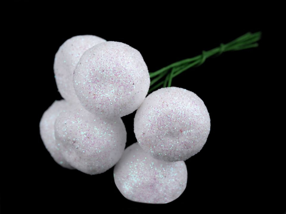 Dekorační bobulky vás uchvátí svým okouzlujícím třpytem. Díky oslnivým glitrům netradičně ozdobí vánoční aranžmá, věnce či sváteční tabule. Rozzáří je díky glitrům na jejich povrchu. Jednotlivé bobulky jsou připevněné k lehce ohebnému drátku.