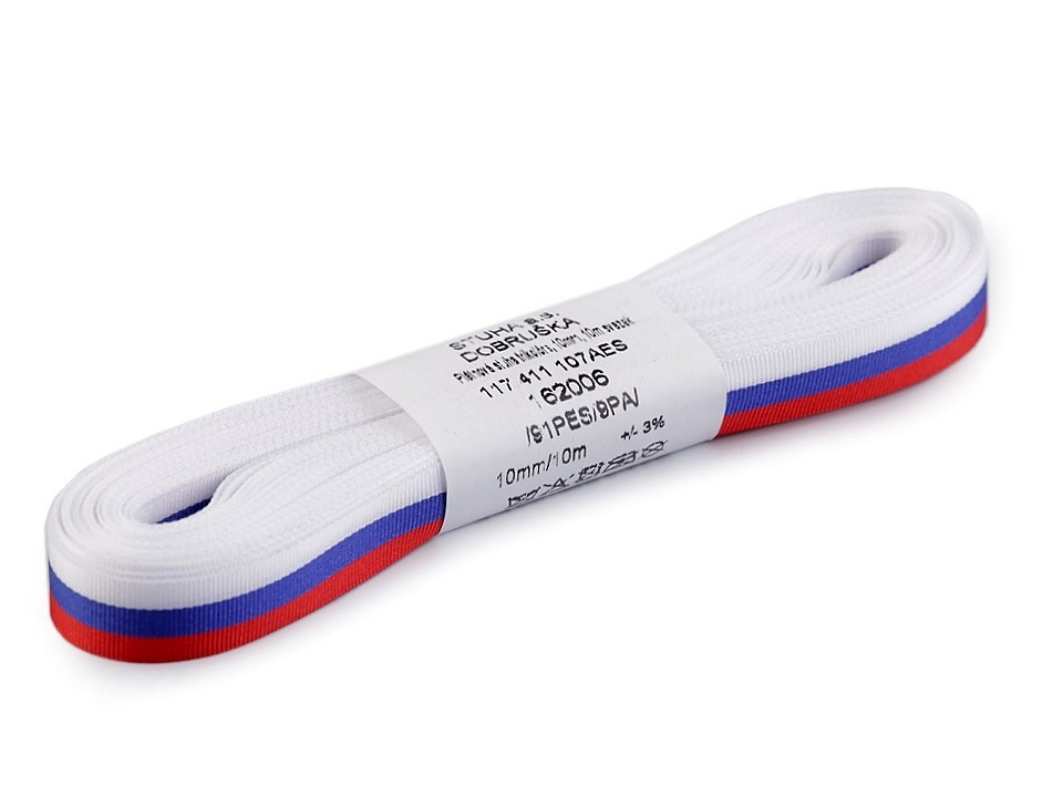 V balení je 5 balíčků stuh po 10m.Složení: 62% polyester