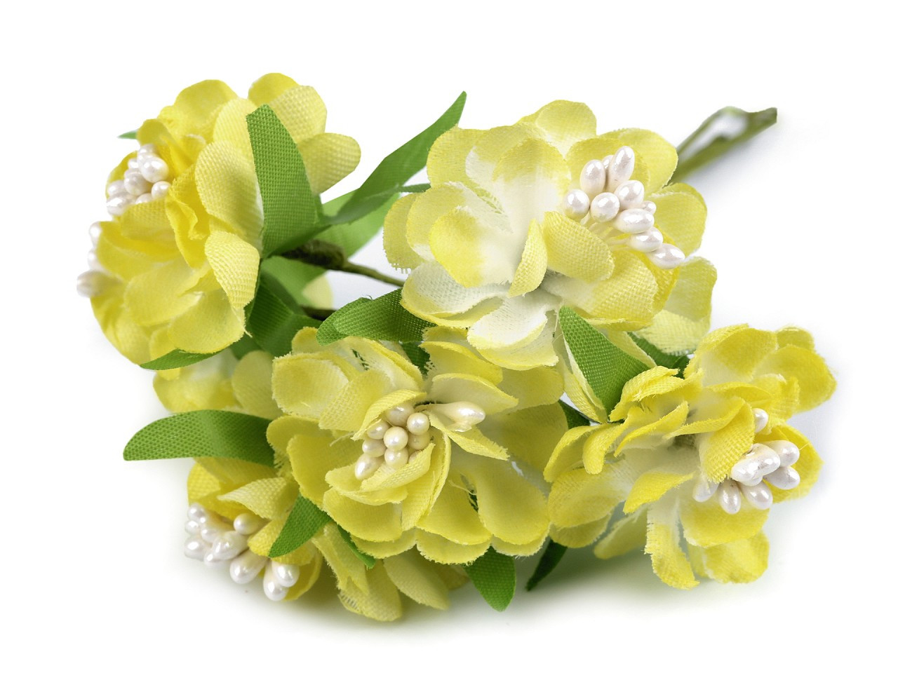 Textilní květy skvěle dozdobí vaše květinové dekorace a aranžmá. Jsou detailně propracované a ozdobené drobnými pestíky. Jednotlivé květy jsou připevněné k ohebnému drátku omotaném floristickou páskou, který umožňuje snadnou manipulaci a lehkou tvarovatelnost.