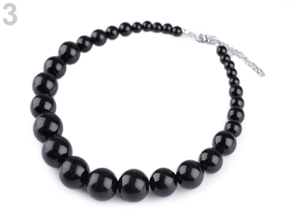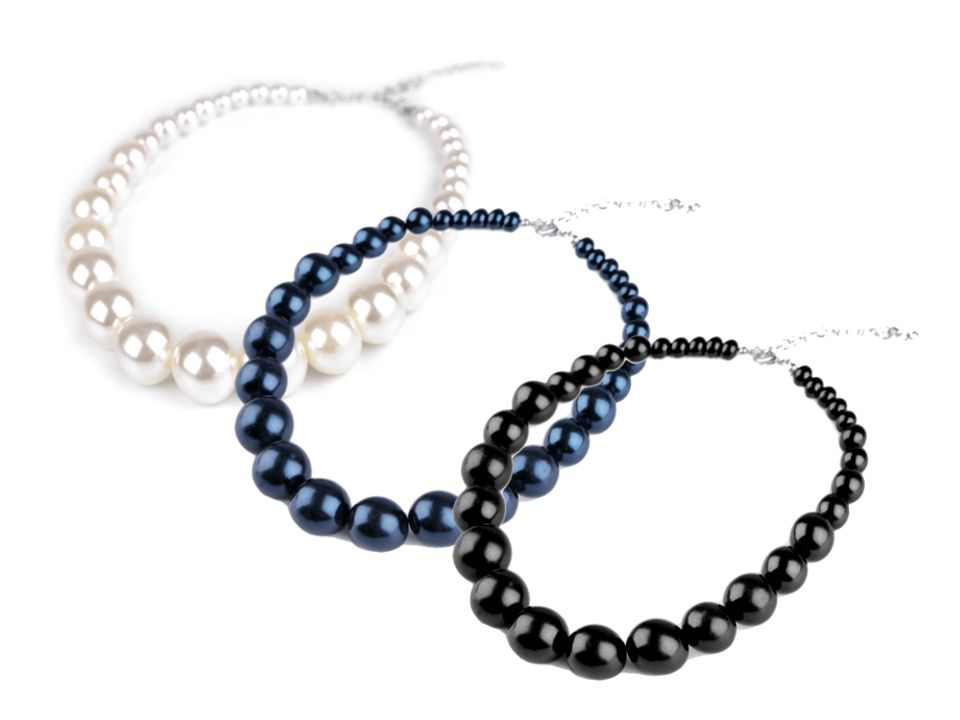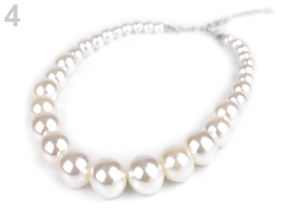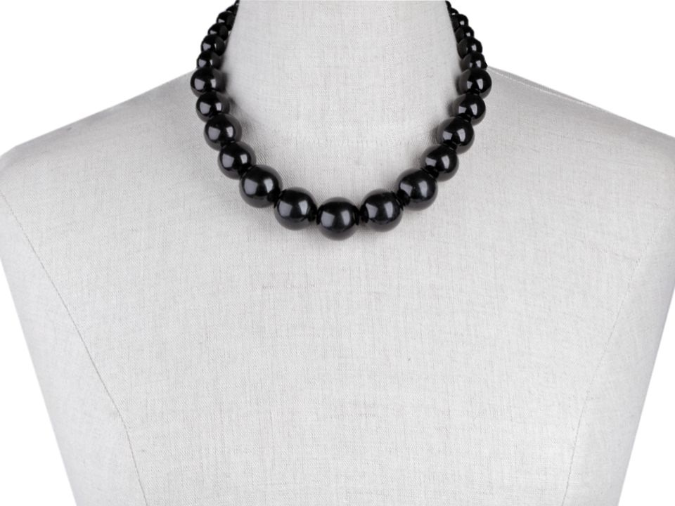 Náhrdelník s velkými perlami v retro stylu je elegantní klasikou. Hodí se ke slavnostním příležitostem, jako jsou plesy, svatby, různé večírky a party, ale můžete jej nosit i k halence do práce. Náhrdelník je tvarovaný, největší perla ve středu má průměr 2 cm, nejmenší u krku má průměr 0,8 cm.