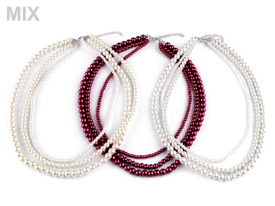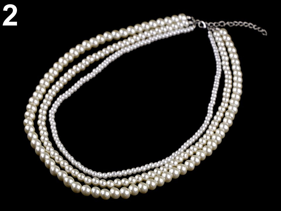 Víceřadý perlový náhrdelník je elegantní klasikou, která by neměla chybět v žádné šperkovnici. Hodí se ke slavnostním příležitostem jako jsou plesy, svatby, návštěvy divadel apod. Je ze tří řad perel různých velikostí.