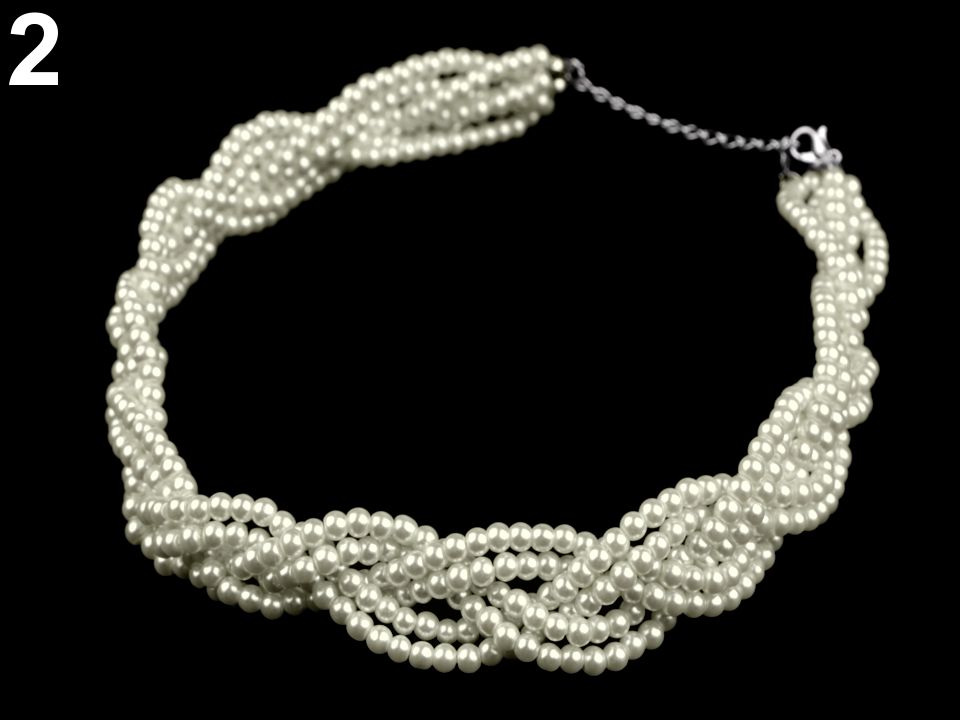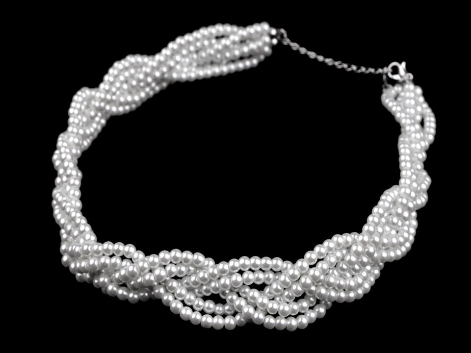 Elegantní perlový náhrdelník se hodí ke slavnostním příležitostem. Je dárkem, který potěší ženy všech věkových generací. Je zdařilou imitací pravých perel, spletený ze šesti pramenů.