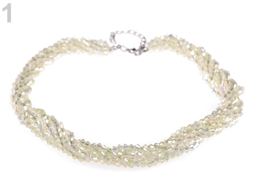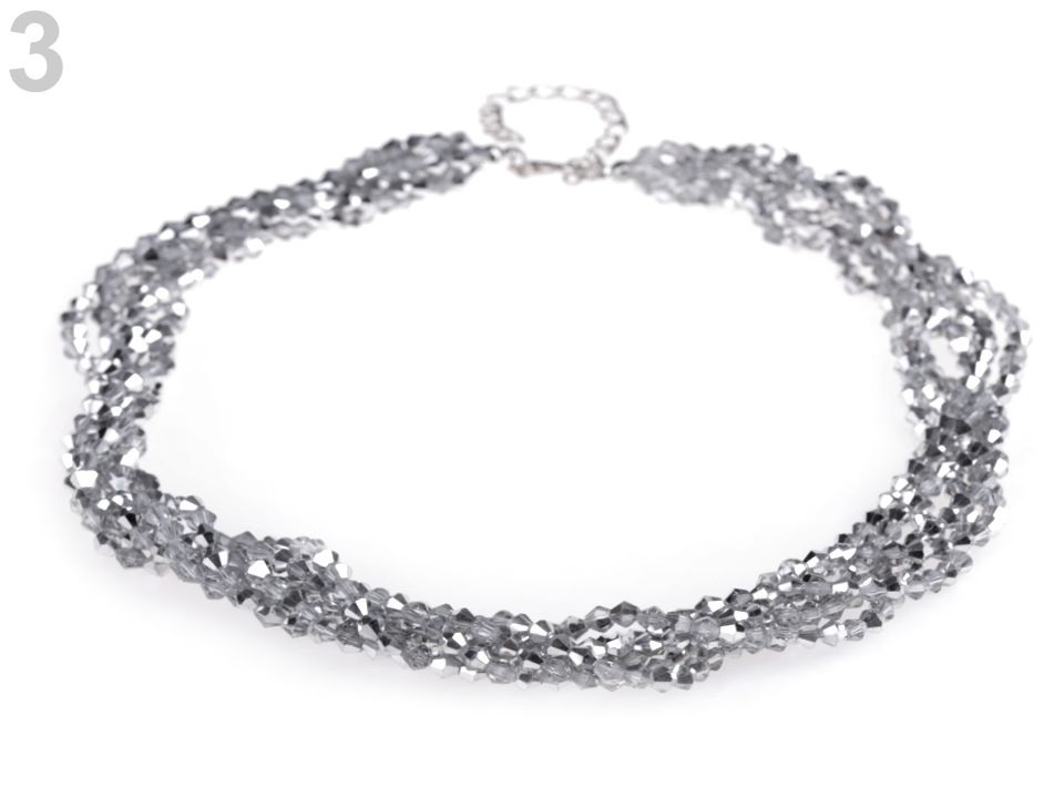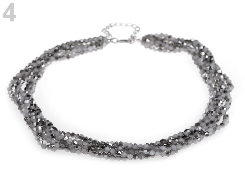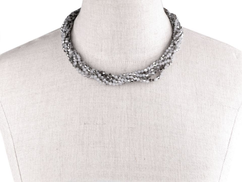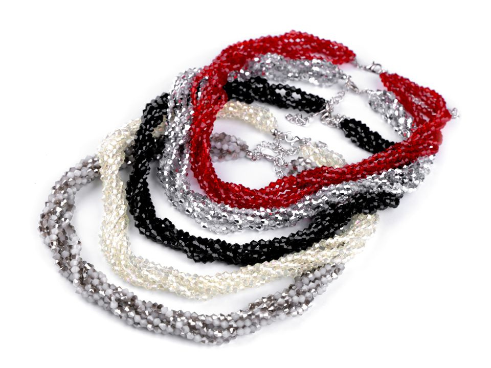 Luxusní kroucený náhrdelník z broušených korálků oslňuje už z dálky. Díky výbrusu skleněných korálků má vysoký třpyt. Je vhodný ke slavnostním přiležitostem jako jsou plesy, večírky, party apod. Řadí se mezi krátké náhrdelníky, hodí se do všech typů výstřihů. Působí bohatým dojmem, je spletený ze 6 řad broušených sluníček.