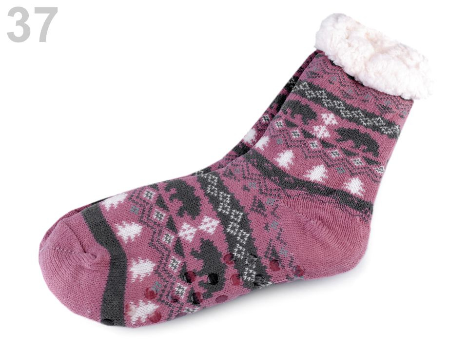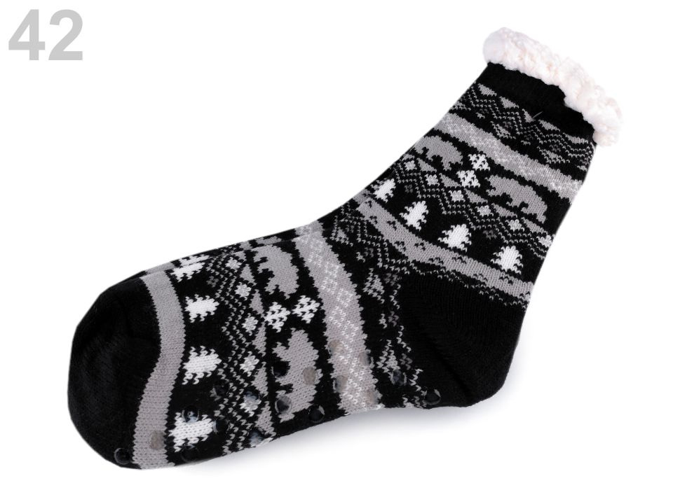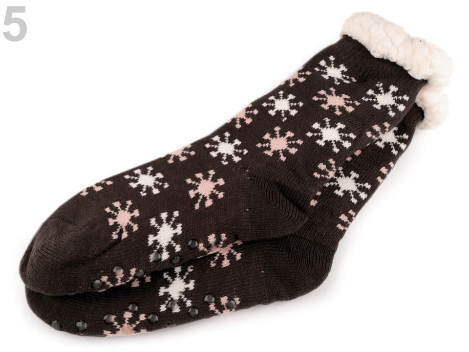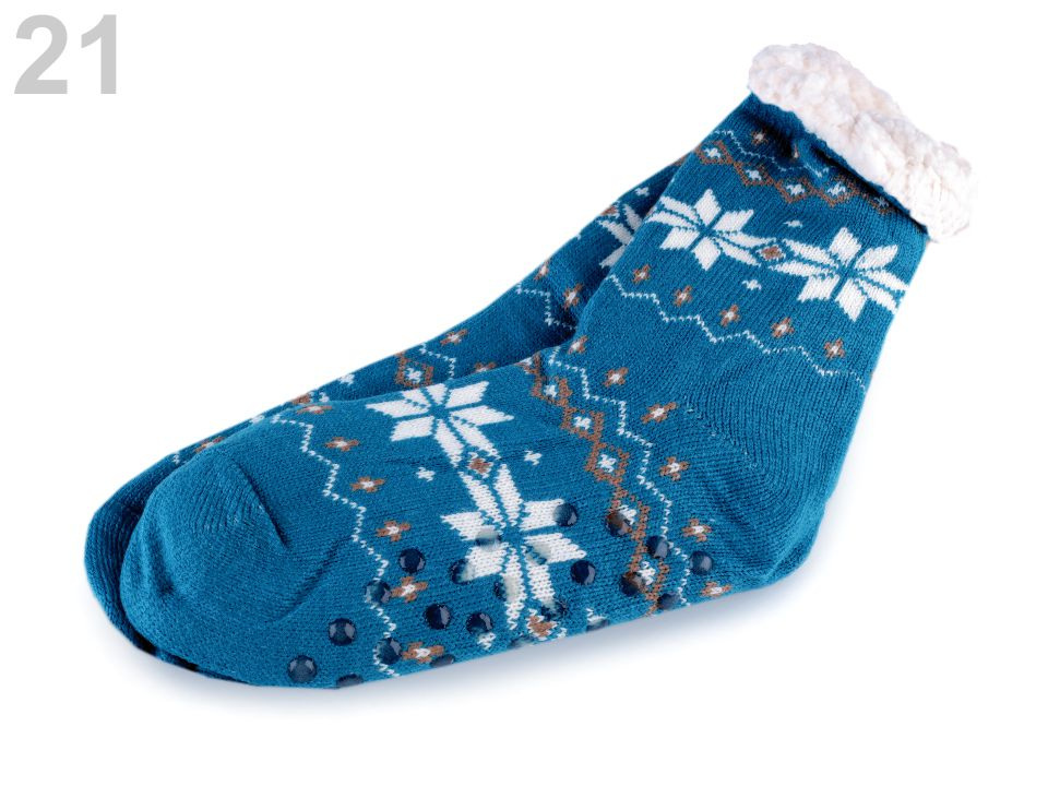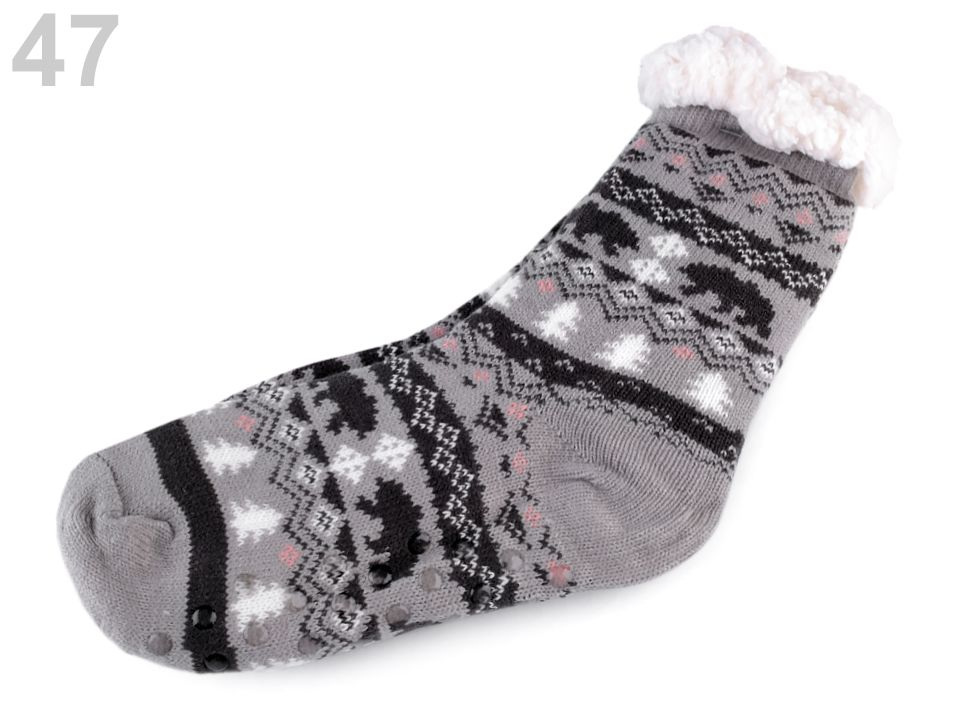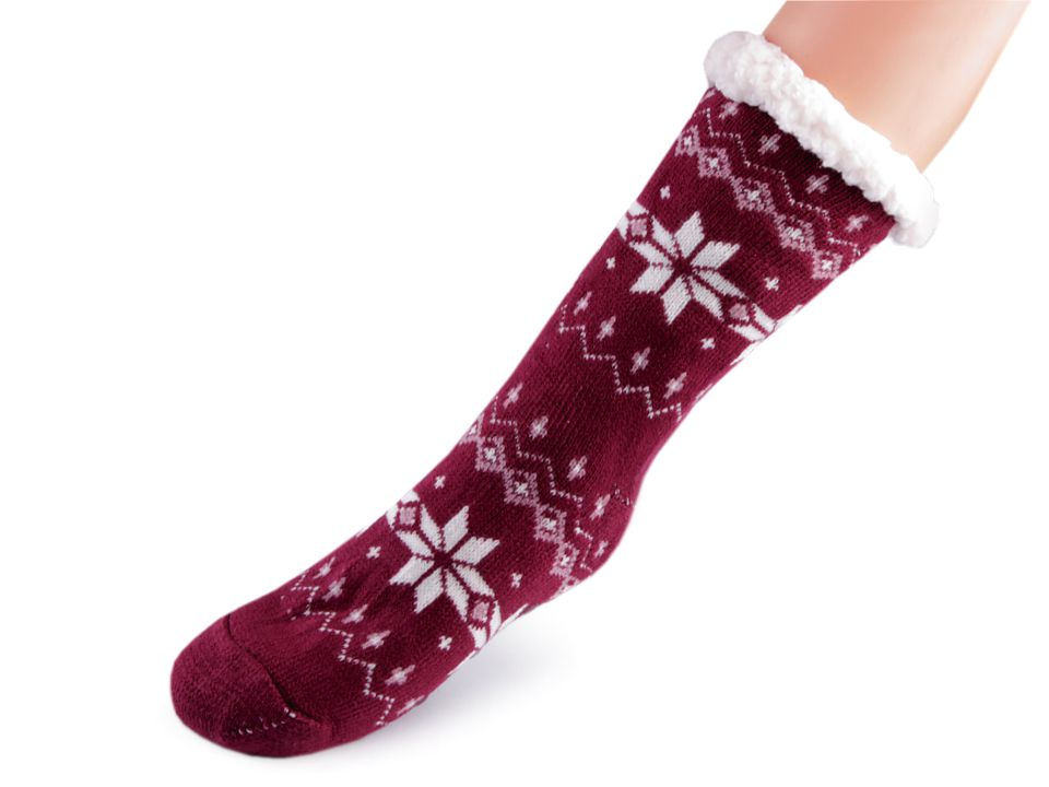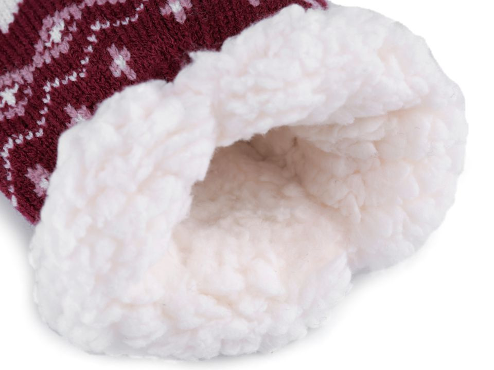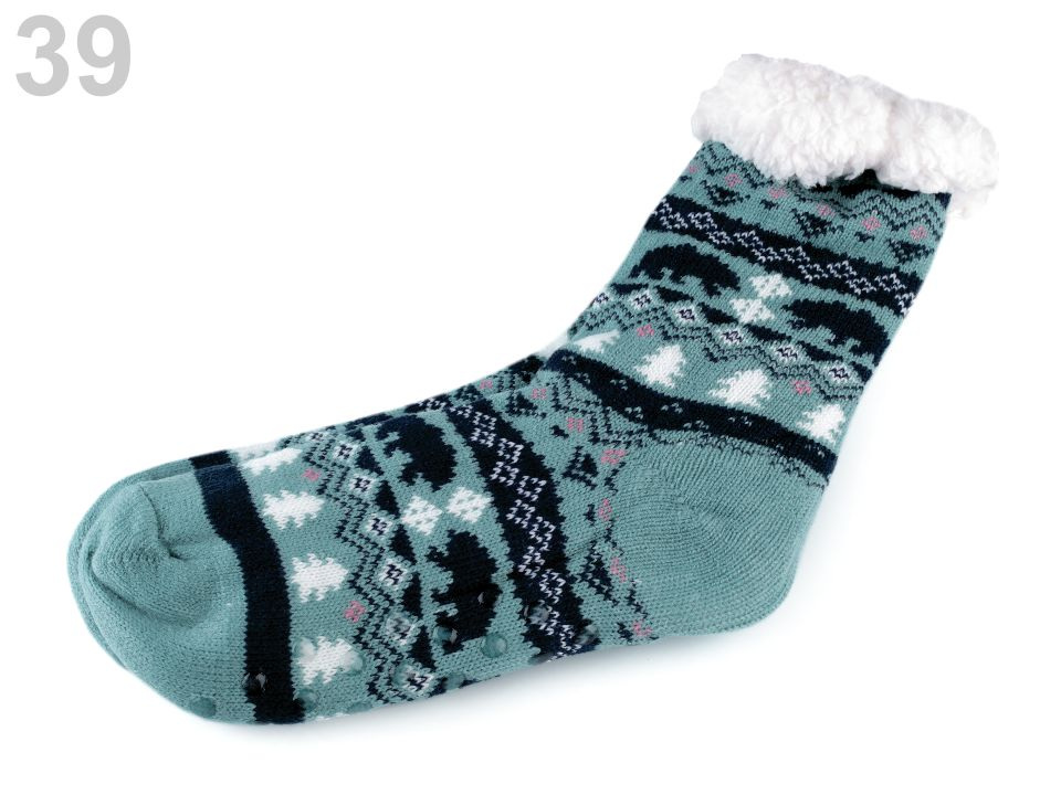 Protiskluzové gumové plošky na chodidle zabrání uklouznutí, můžete je používat i jako domácí obuv. Široký měkký lem je příjemný na nošení. Ať už vám padne do oka jakýkoliv vzor, určitě si tyhle teplé ponožky zamilujete i díky lehkosti a vlastnostem, které má ovčí vlna.