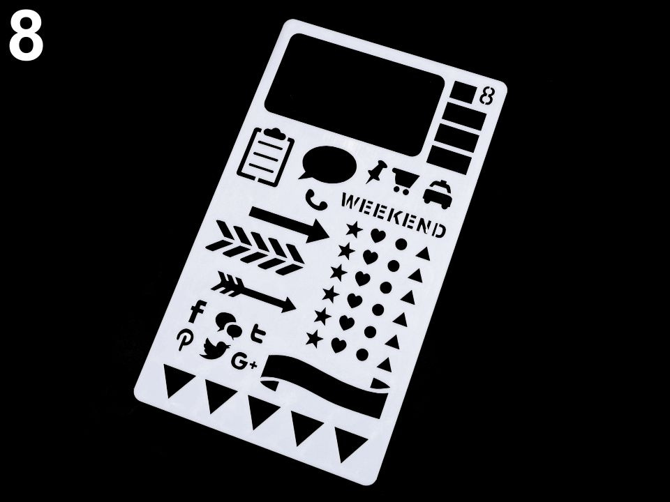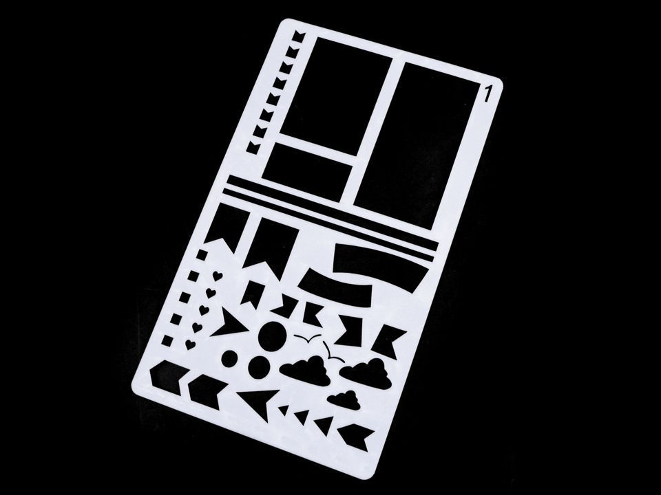 Vedete si vlastní deník nebo diář a chcete ho mít dokonalý? Zkuste plastové šablony, které vám pomohou udržet jednotný styl. Obsahují různé typy rámečků, šipky, piktogramy apod.