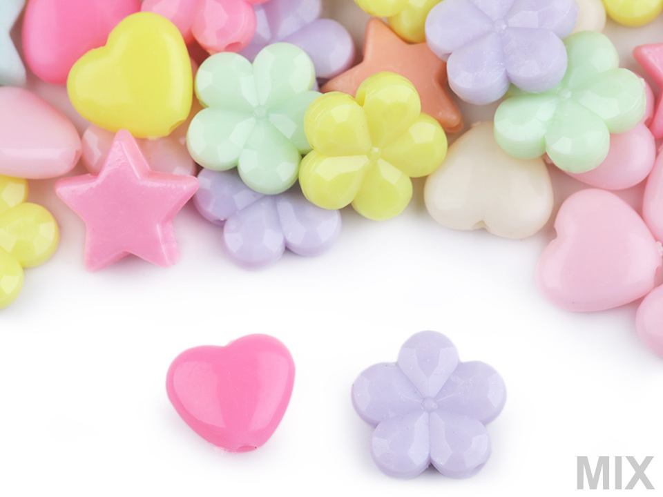 Veselé korálky potěší svou barevností nejen děti. Korálky jsou díky plastovému materiálu velmi lehké. Dají se skvěle kombinovat s jinými plastovými korálky. Můžete je navlékat na lanko nebo pruženku či silon a vytvořit tak nevšední náušnice, náramek, náhrdelník nebo přívěsek.