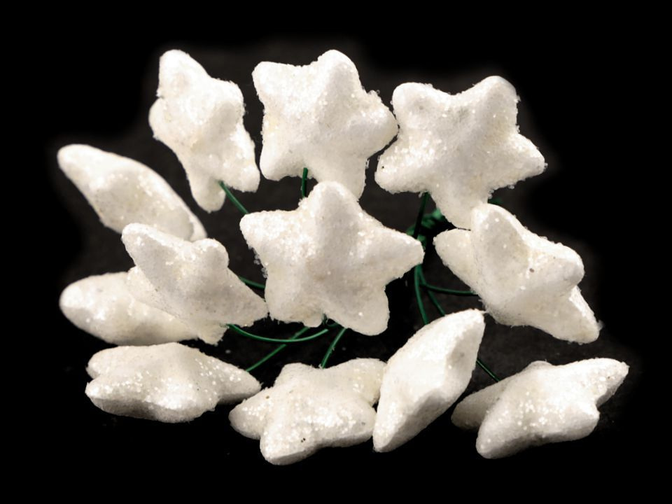 Dekorační hvězdičky skvěle doplní vaše vánoční aranžmá. Oslnivé glitry dodají nádech elegance a luxusu vazbám, věncům nebo sváteční tabuli. Jednotlivé hvězdičky jsou připevněné k lehce ohebnému drátku. Jsou vhodné také k zapichování do polystyrenových polotovarů.