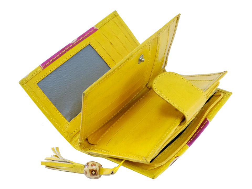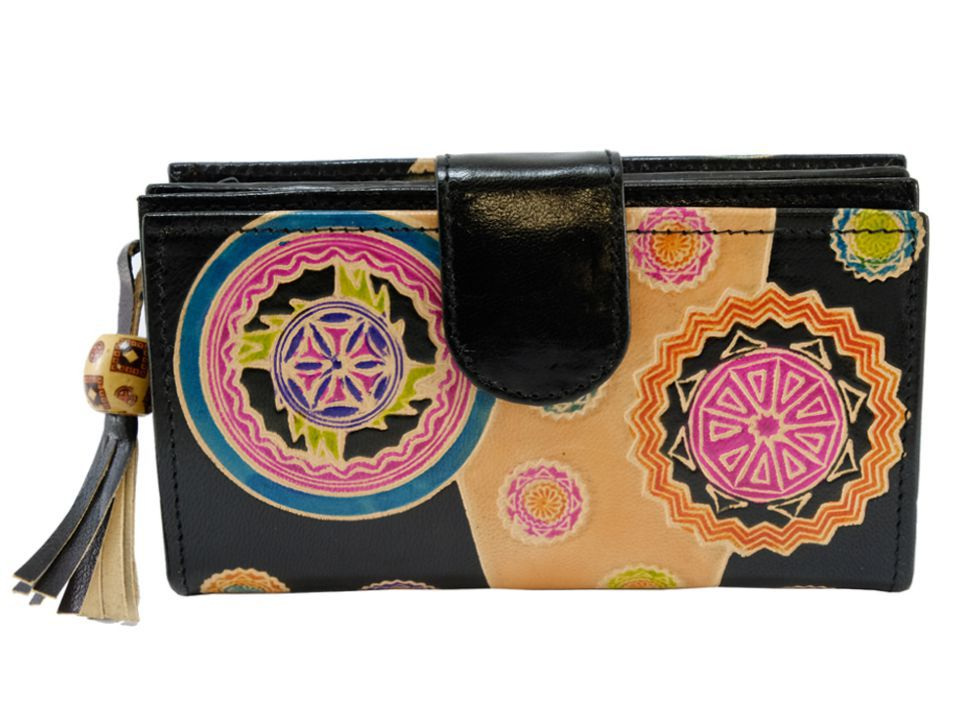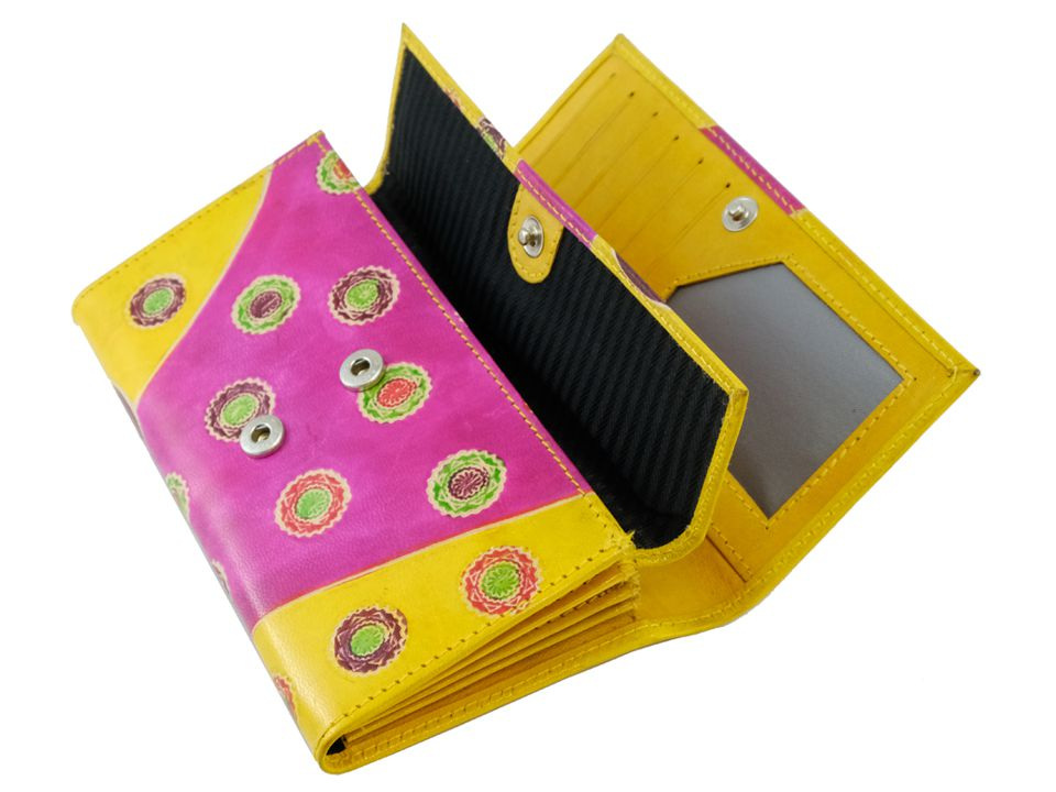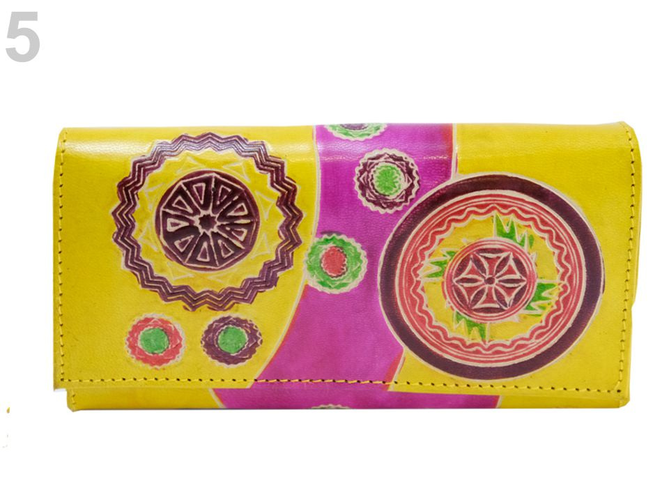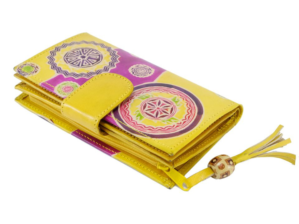 Dámská peněženka, která vás očaruje netradičním etno motivem, vyniká svými pestrými barvami a kvalitním zpracováním z kůže. Je ručně malovaná, a proto se každý kus mírně odlišuje, čímž se z jednotlivých peněženek stávají originály.