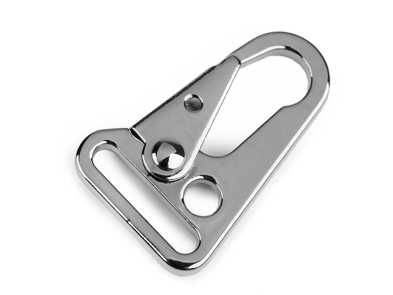 Bytelná kovová karabina je vhodná k upevnění popruhů k taškám nebo k výrobě klíčenek. Karabina není otočná. Je vyrobená z nemagnetického kovu, magnetická je otevírací část.