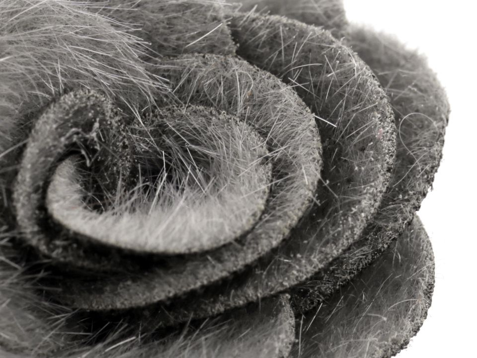 Čtyřvrstvý textilní květ nevšedně ozdobí vaše oděvy i módní doplňky díky materiálu připomínajícím kožešinku.
