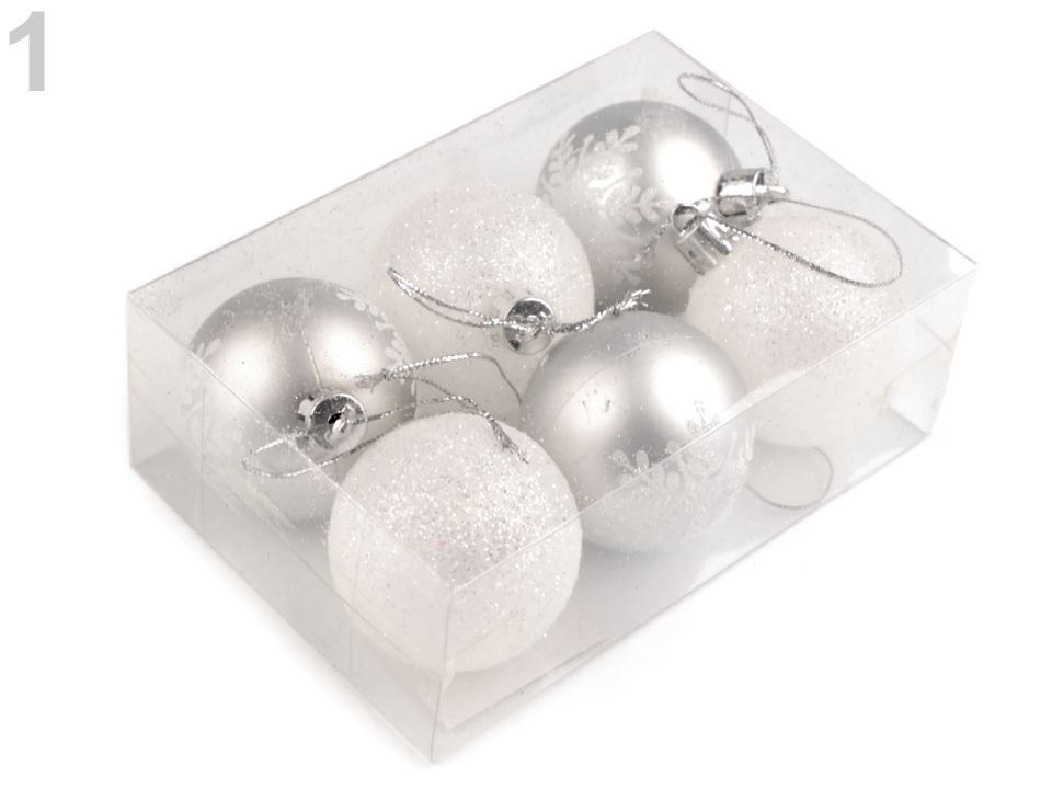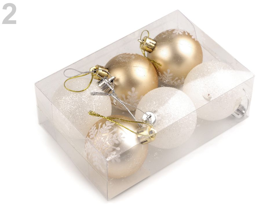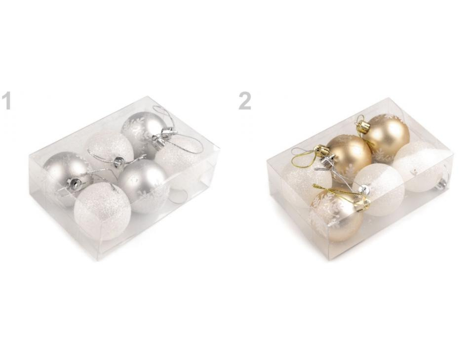 V jedné sadě jsou 3 ks s obrázkem vločky (nebo u č. 4 s obrázkem stromů) a 3 ks celé zahalené glitry.