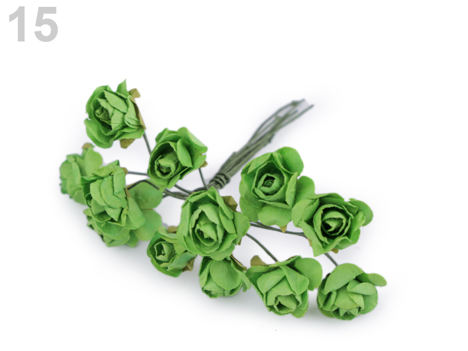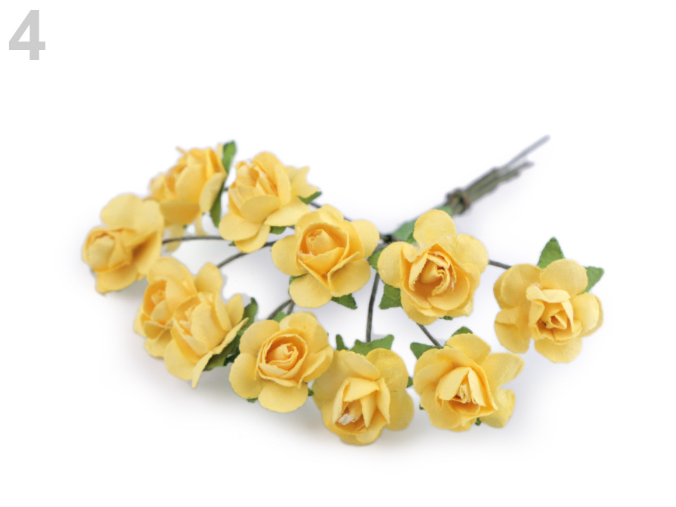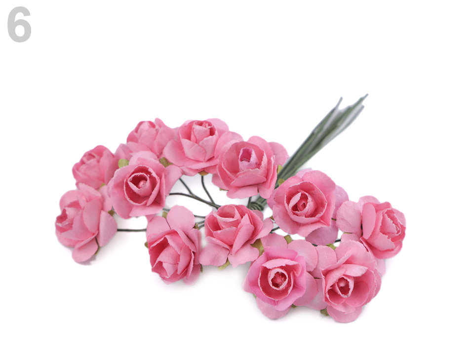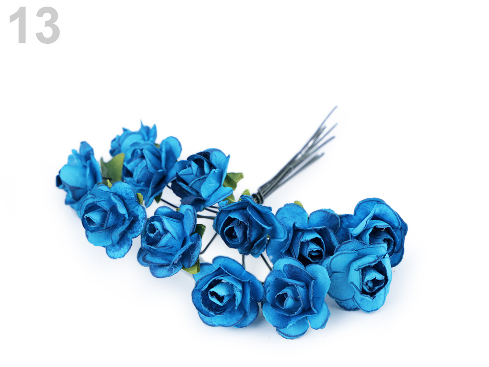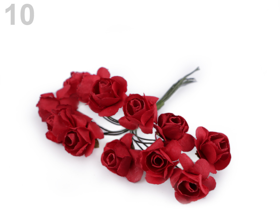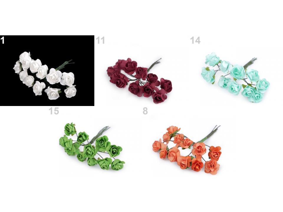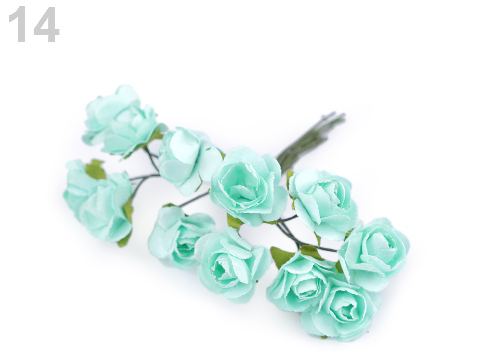 Drobné květy růže jsou připevněné k ohebnému drátku omotaném floristickou páskou, umožňující snadnou manipulaci a lehkou tvarovatelnost. Kvítky využijete při tvorbě věnců, květinových dekorací a aranžmá, voniček, čelenek či věnečků do vlasů.