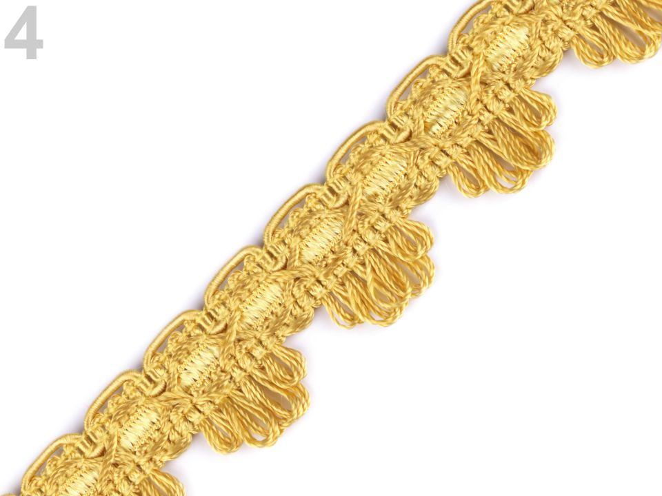 Použití: Čalounický prýmek využijete jako ozdobný prvek na šaty, sukně, kostýmy a jiné oděvy, ale také na výrobu a renovaci nábytku do divadel, zámků, hradů a jiných historických budov, kterému dodají exkluzivní vzhled.