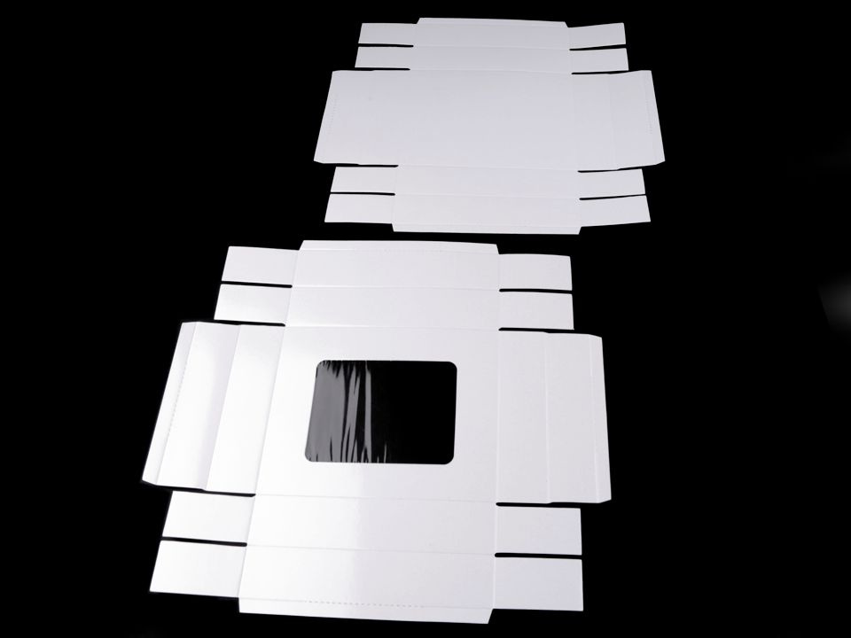 Krabici dodáváme v rozloženém stavu (horní víko - 33 x 37 cm, spodní část krabice - 32 x 36,5 cm). Složíte si ji jednoduše podle vyznačených ohýbacích krajů. Rozměr průhledu je 9 x 12 cm