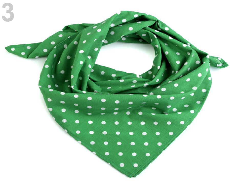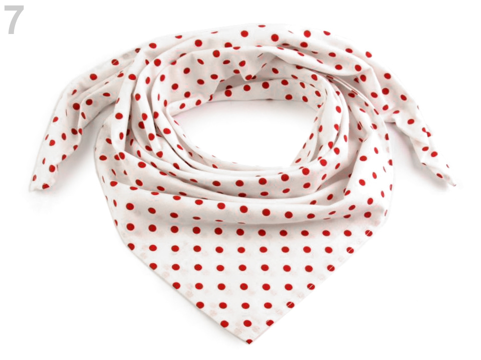 Tyto bavlněné šátky s puntíky se vám jistě budou líbit. Jsou vyrobeny ze 100% bavlny a jsou k dostání v mnoha barvách. Zkuste třeba výrazný černý s bílými puntíky nebo jemný a elegantní bílý se zelenkavými puntíky. Ať už toužíte po jakékoliv barvě, jistě si z nabídky vyberete. Všechny šátky jsou české výroby, která vám zajišťuje vysokou kvalitu.
