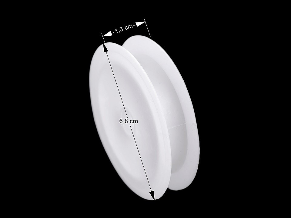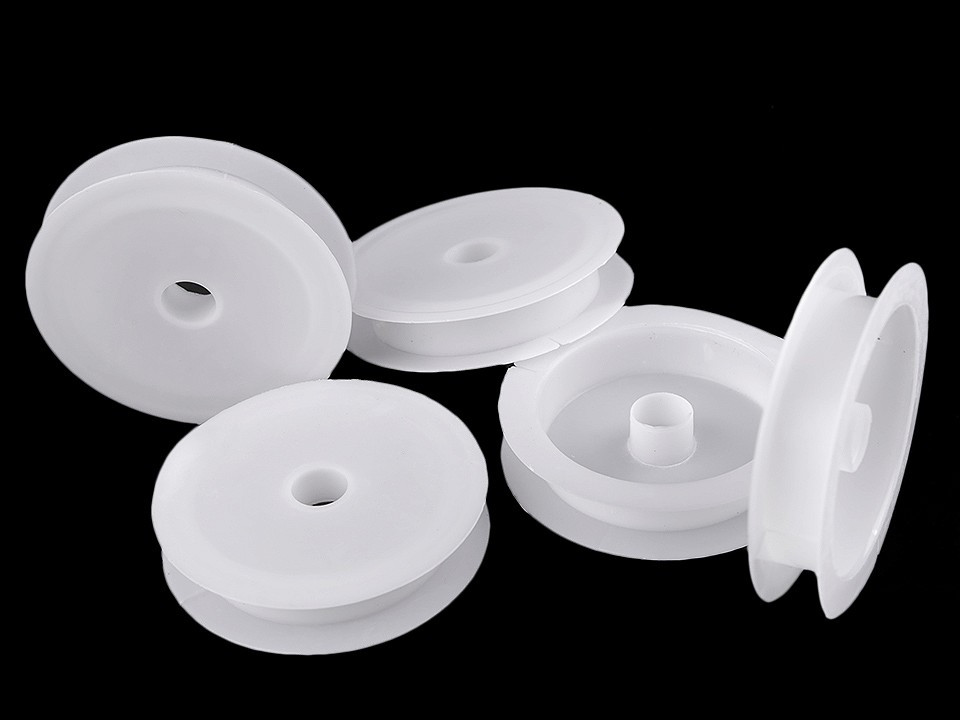 Plastová cívka je vhodná k namotávání pruženky, silon a nitě. Na boku má malou drážku, do které uchytíte konec nitě či silonu. Uprostřed má dírku o průměru 11 mm. Můžete ji navléknou na tyč či provázek.
